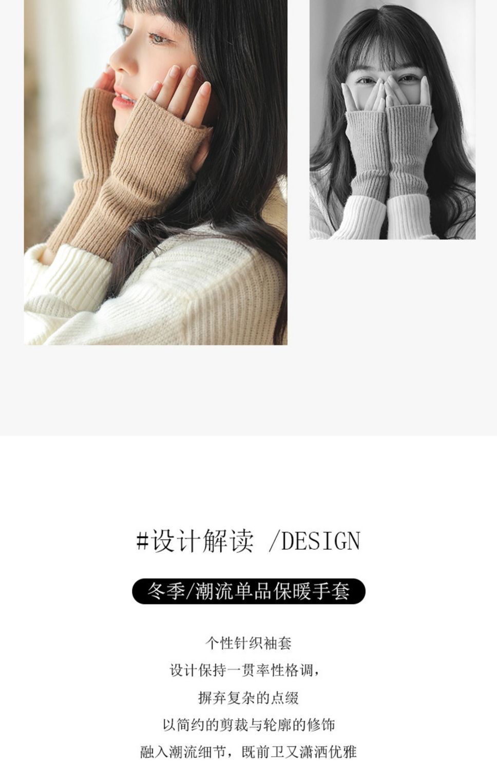 가을과 겨울 반 손가락 장갑 여성용 플러시 올 매치 따뜻한 학생 핑거리스 쓰기 니트 반 손가락 긴 장갑 손목 보호대스토어 가기