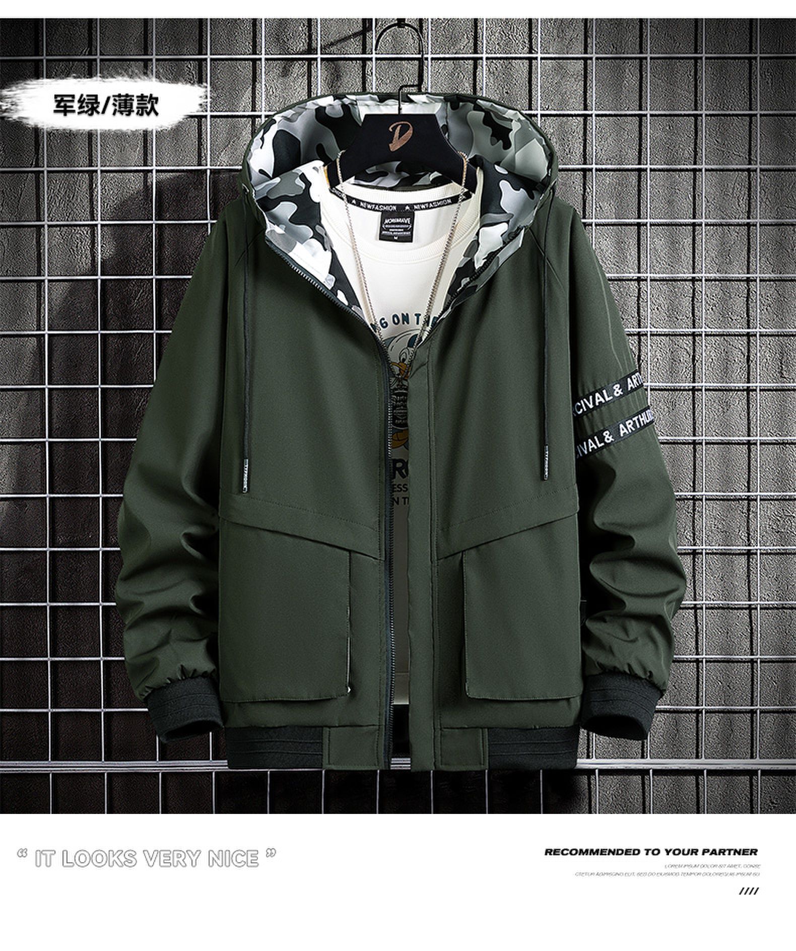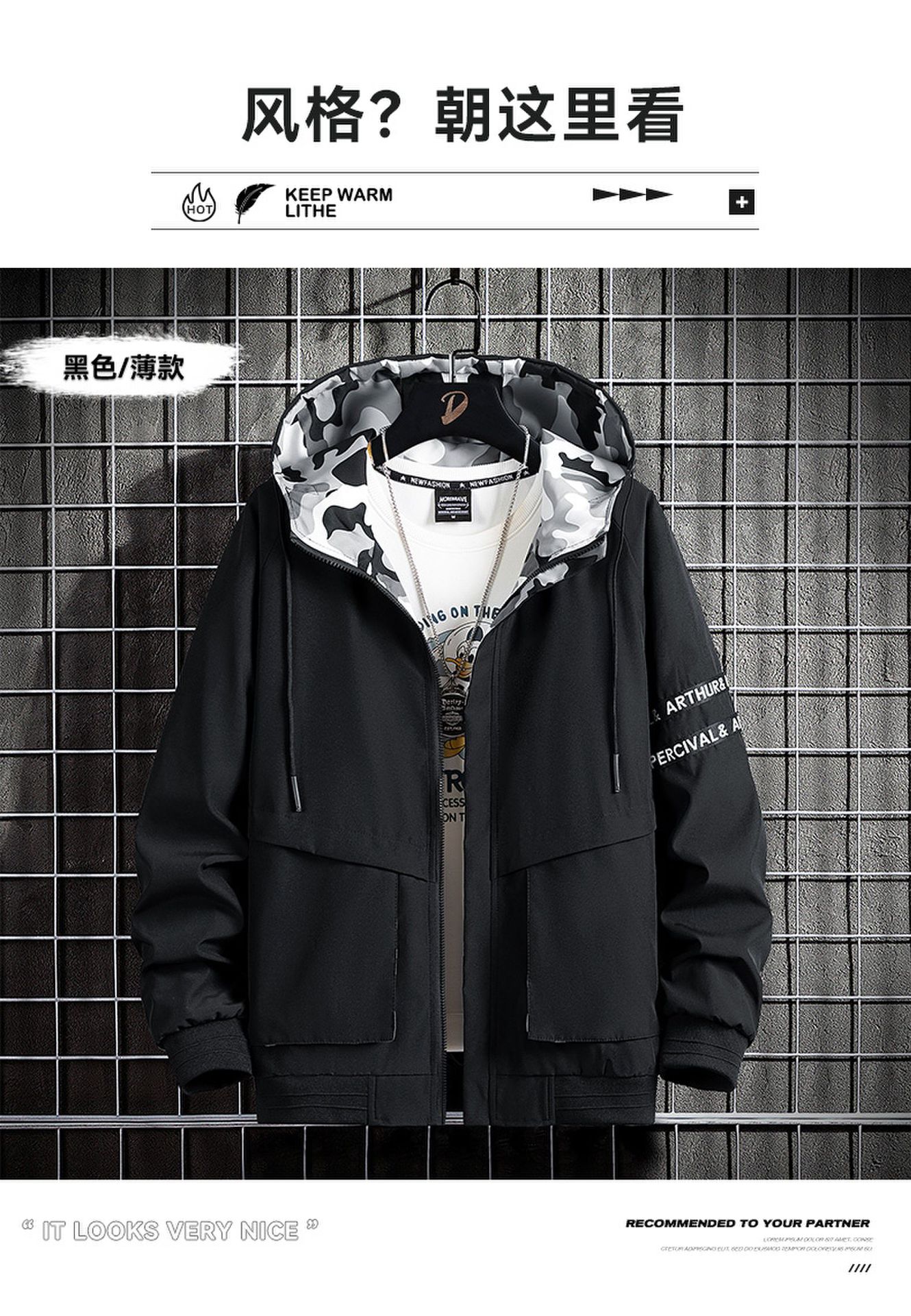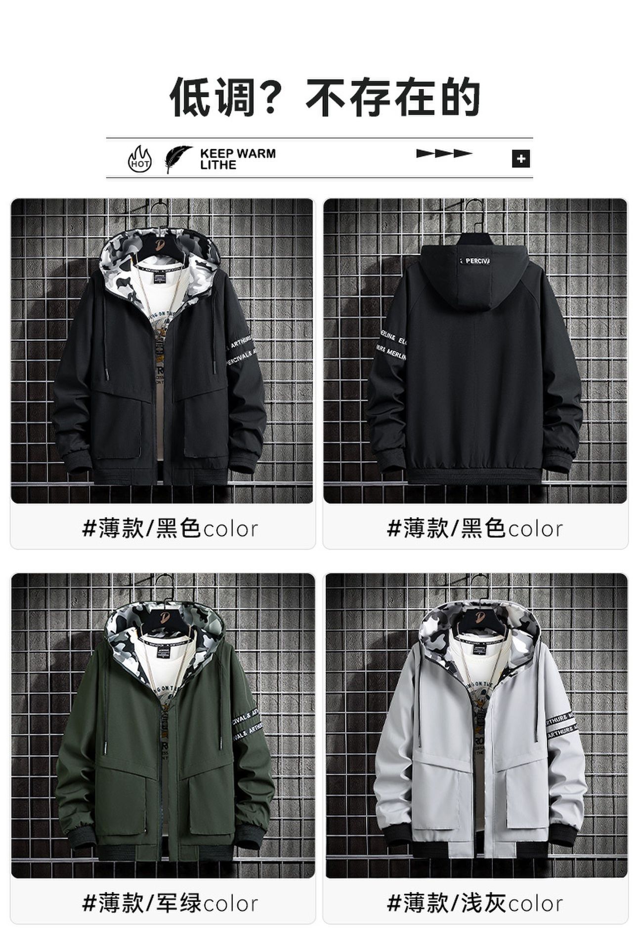 가을 재킷, 워크웨어 재킷, 와이드핏, 트렌디하고 다용도로 활용 가능한 한국 스타일 후드 재킷, 남성용, 두꺼운, 심플, 캐주얼스토어 가기