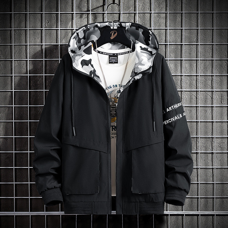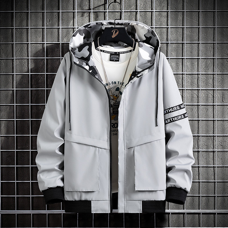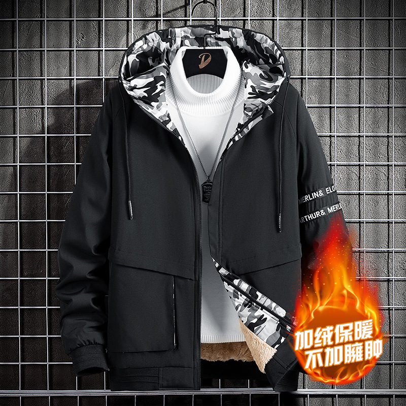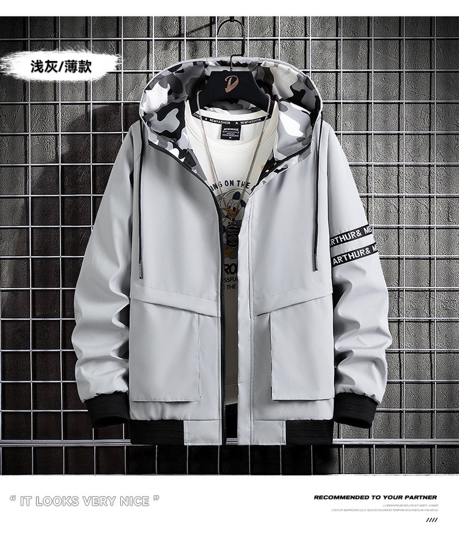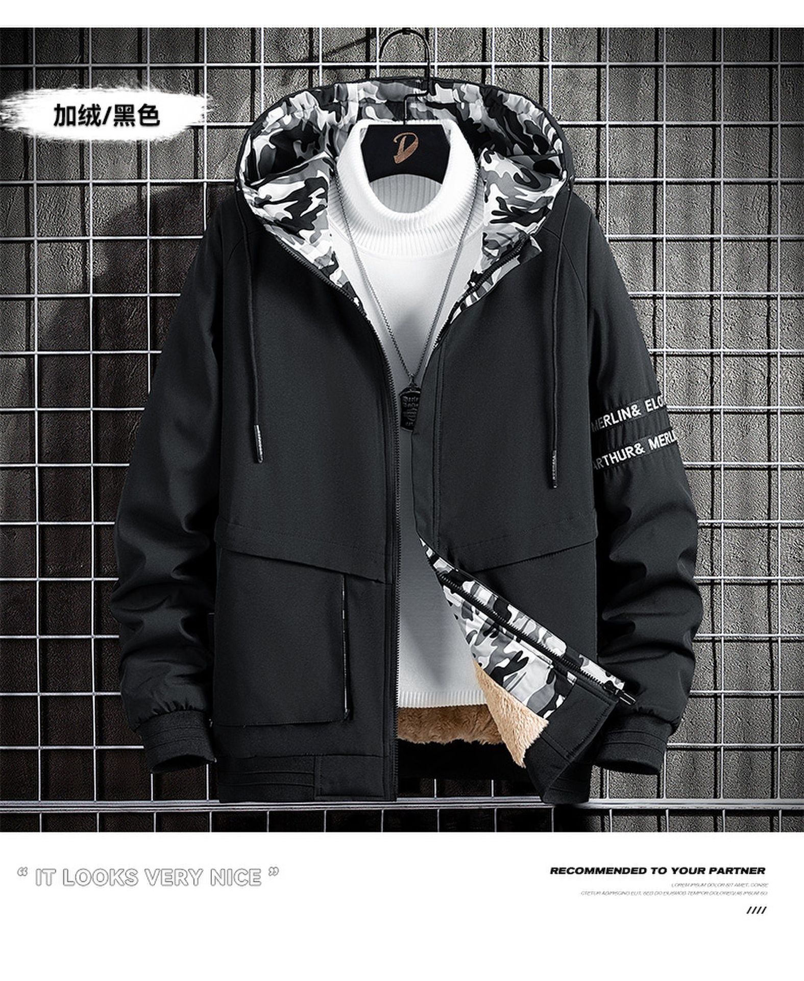 가을 재킷, 워크웨어 재킷, 와이드핏, 트렌디하고 다용도로 활용 가능한 한국 스타일 후드 재킷, 남성용, 두꺼운, 심플, 캐주얼스토어 가기