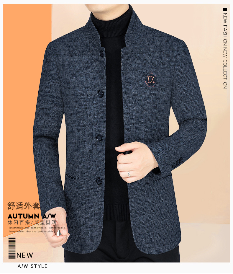 2025 봄 가을 신상 중년 남성 울 재킷 코트 스탠드 칼라 캐주얼 중장년 상의 아빠용스토어 가기