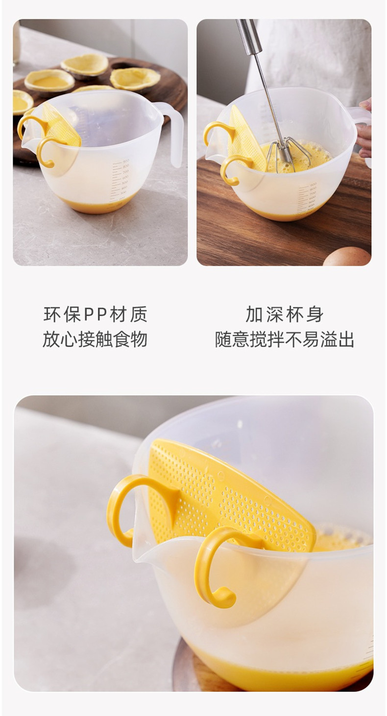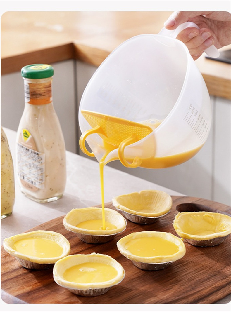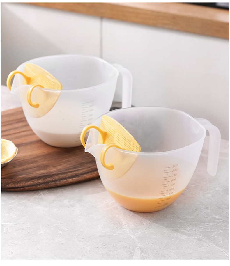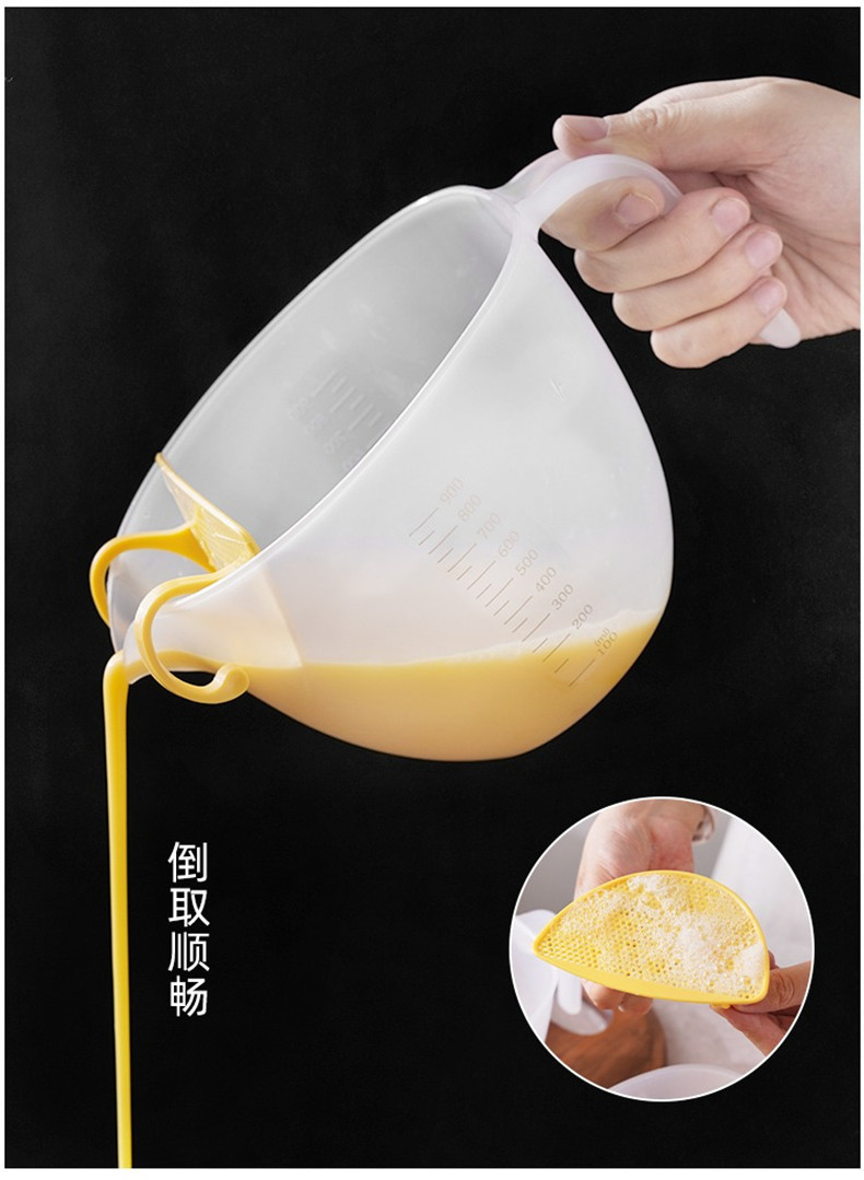 주방 필터 측정 컵 식품 등급 졸업 계란 액체 플라스틱 베이킹 계란 컵 계란 세척 그릇 필터 포함