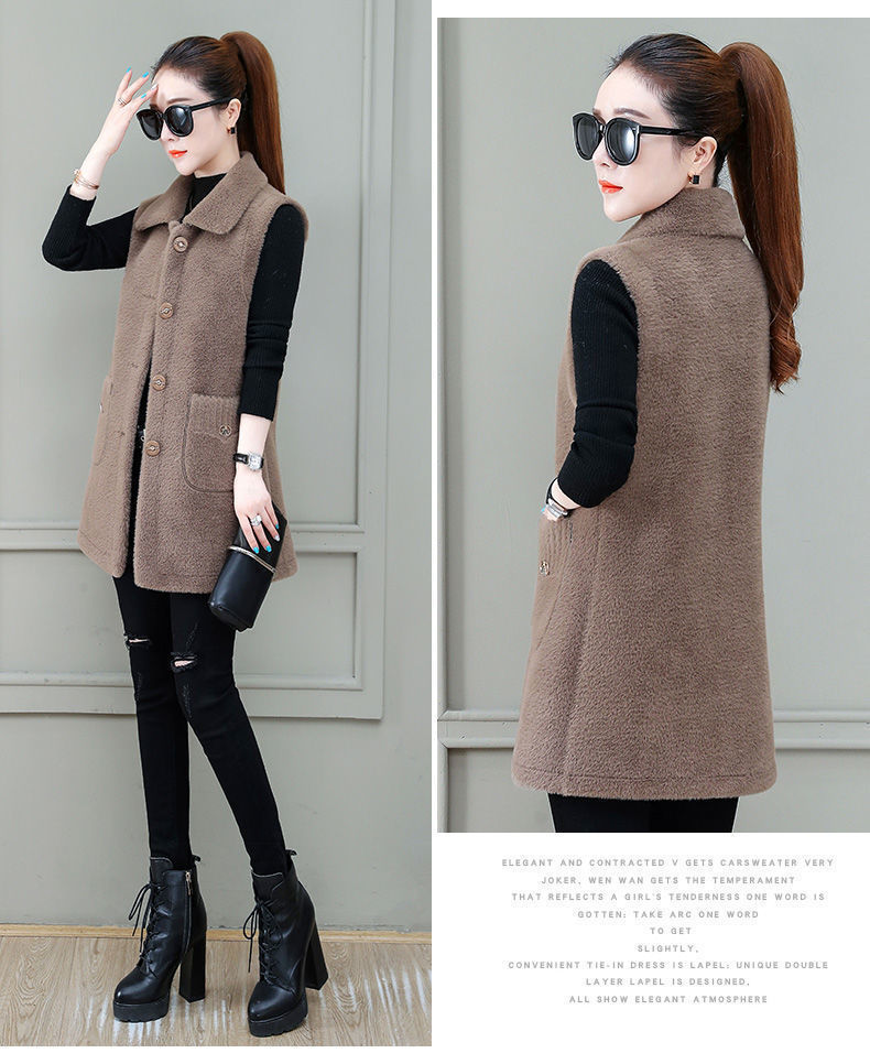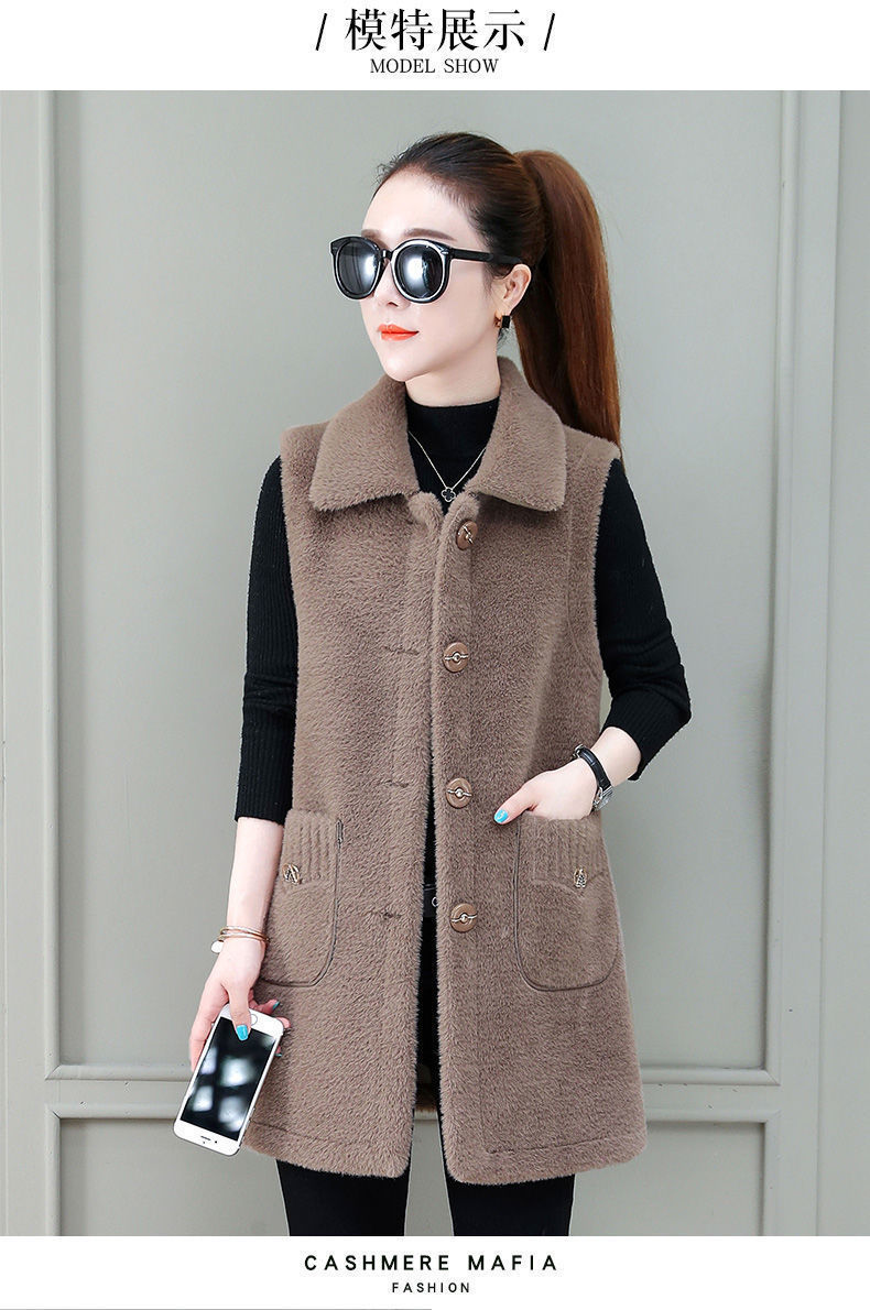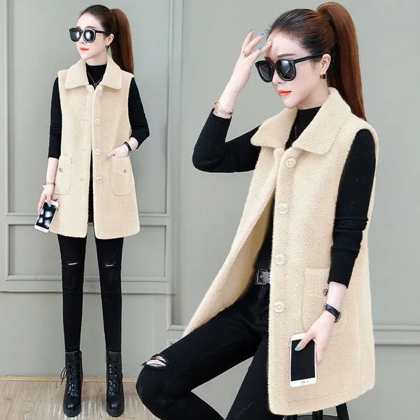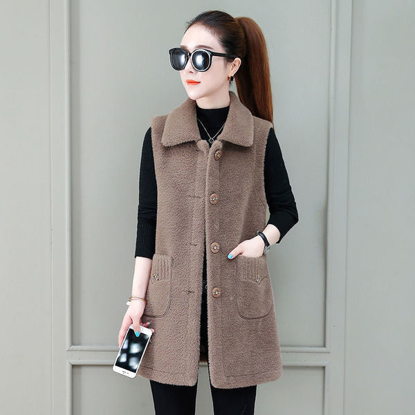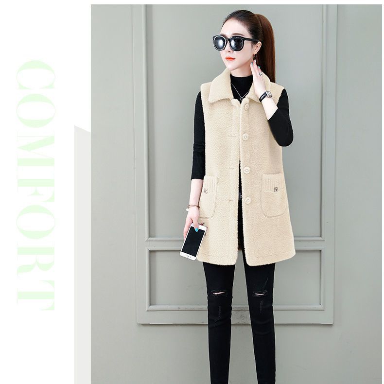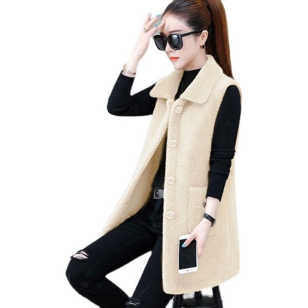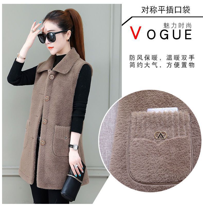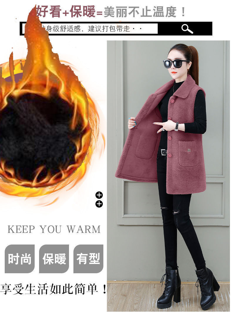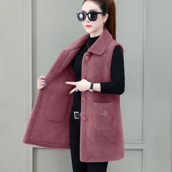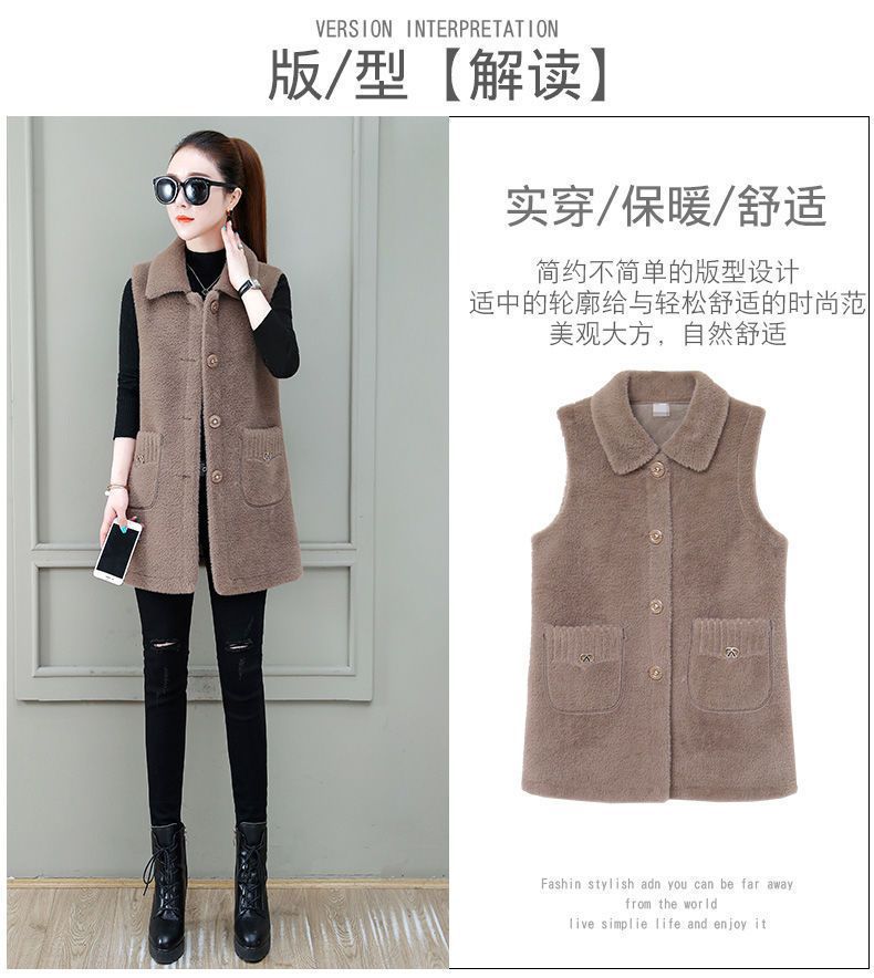 조끼 여자 올 매치 아우터웨어 2023 겨울 새로운 가짜 양고기 벨벳 모피 통합 중간 길이의 양복 조끼스토어 가기
