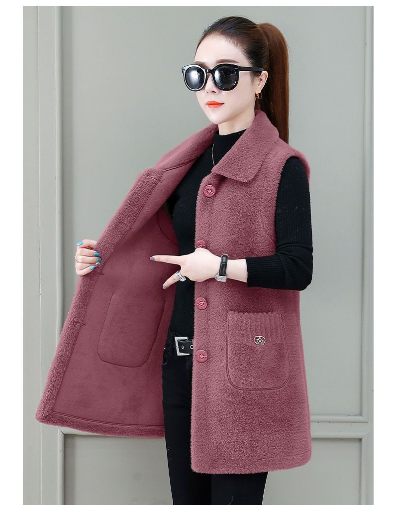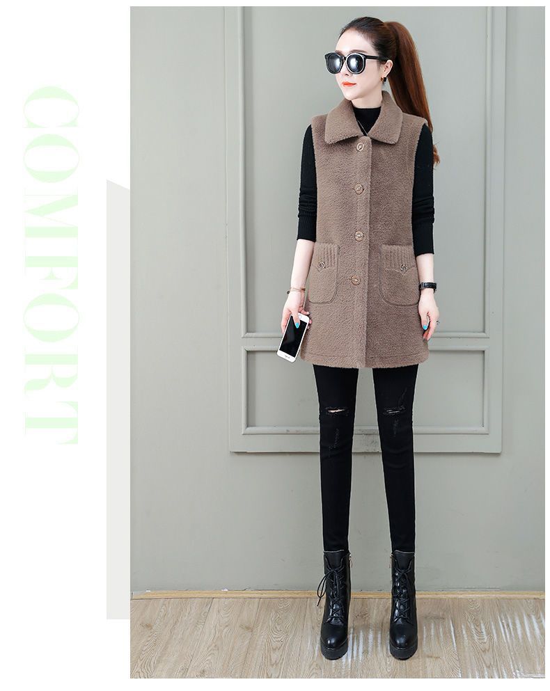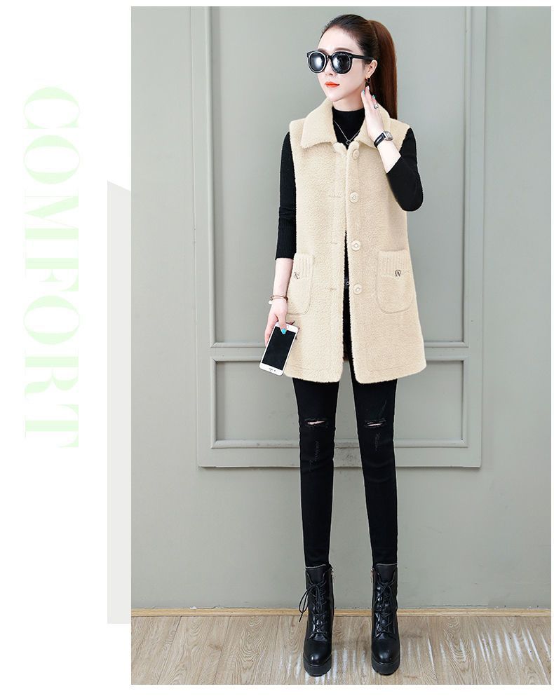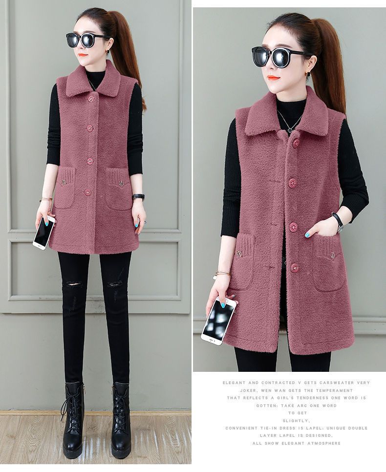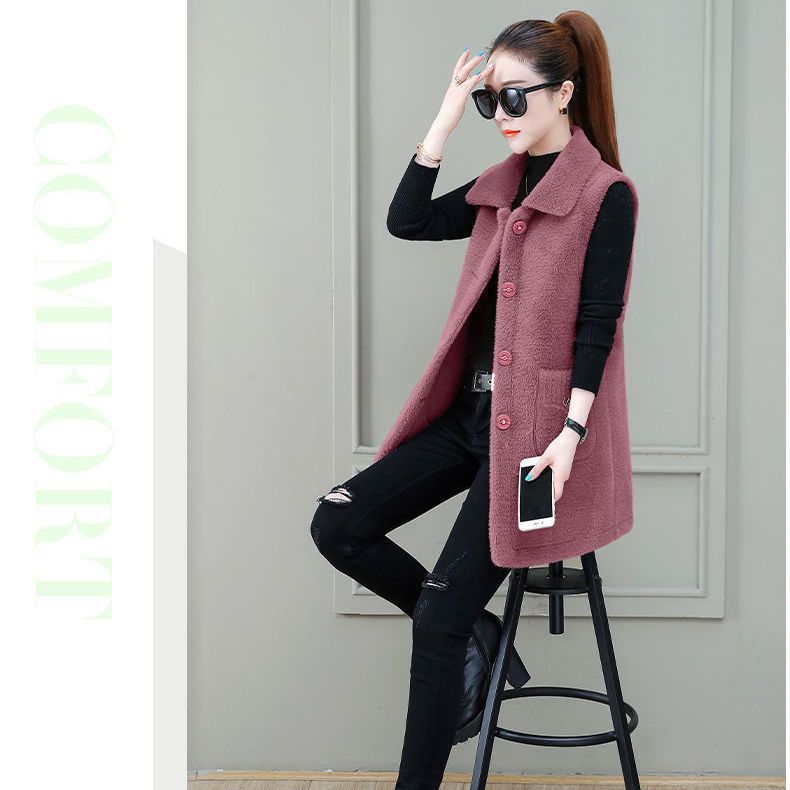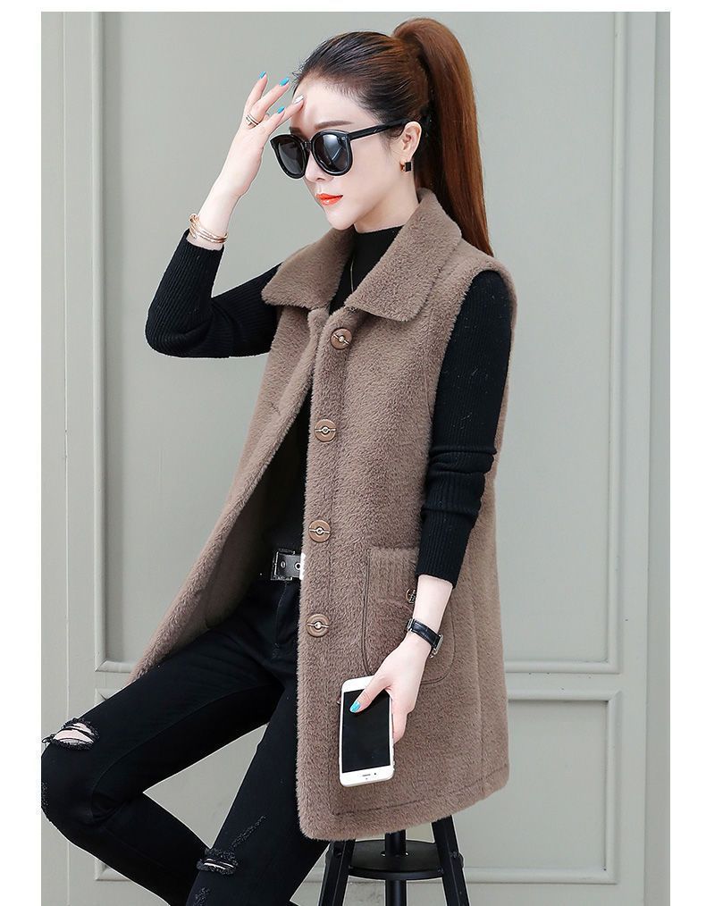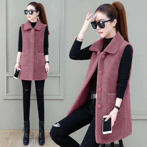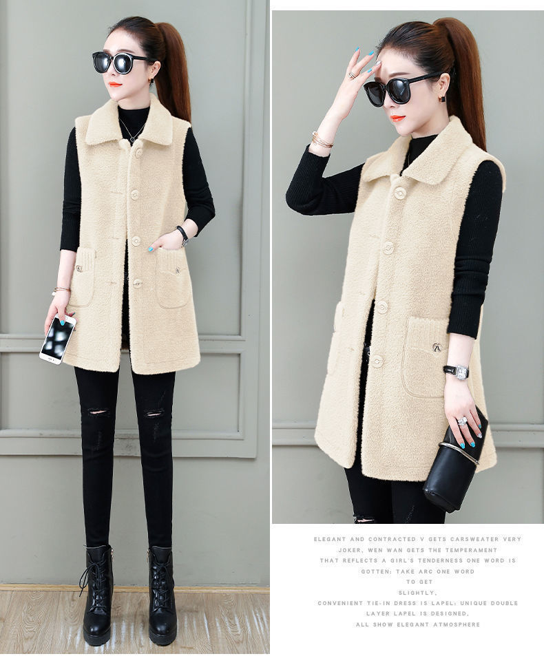 조끼 여자 올 매치 아우터웨어 2023 겨울 새로운 가짜 양고기 벨벳 모피 통합 중간 길이의 양복 조끼스토어 가기