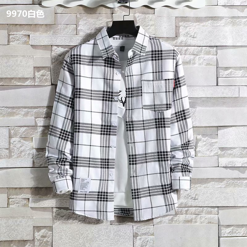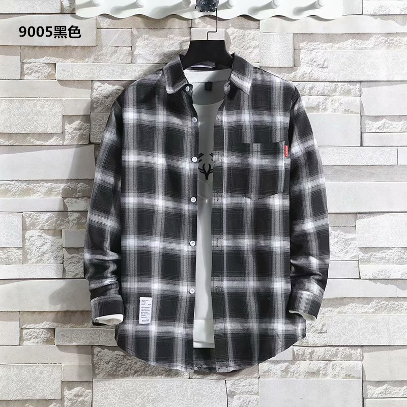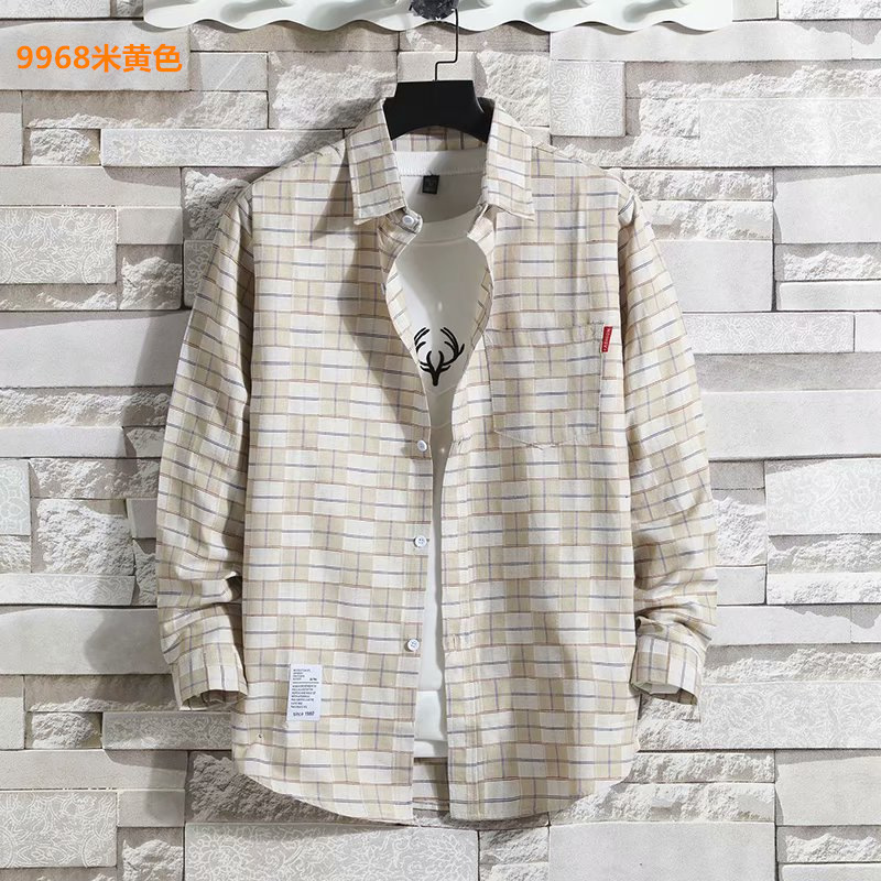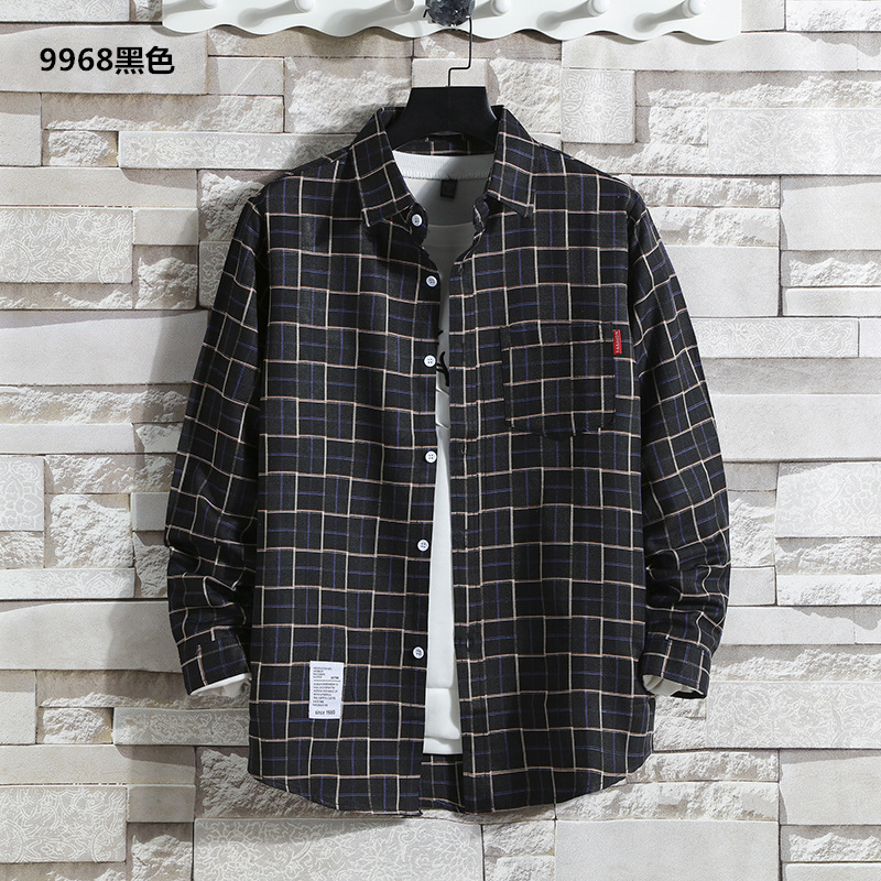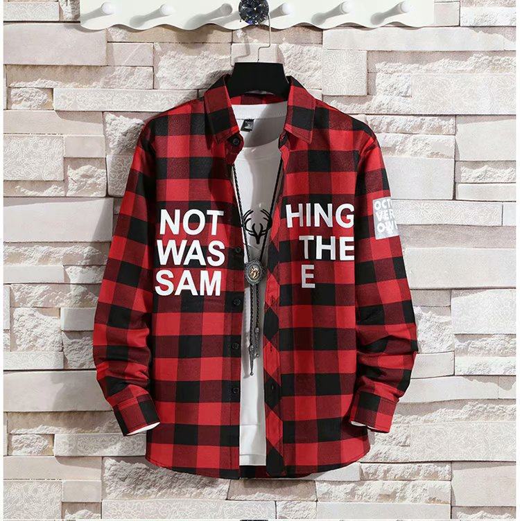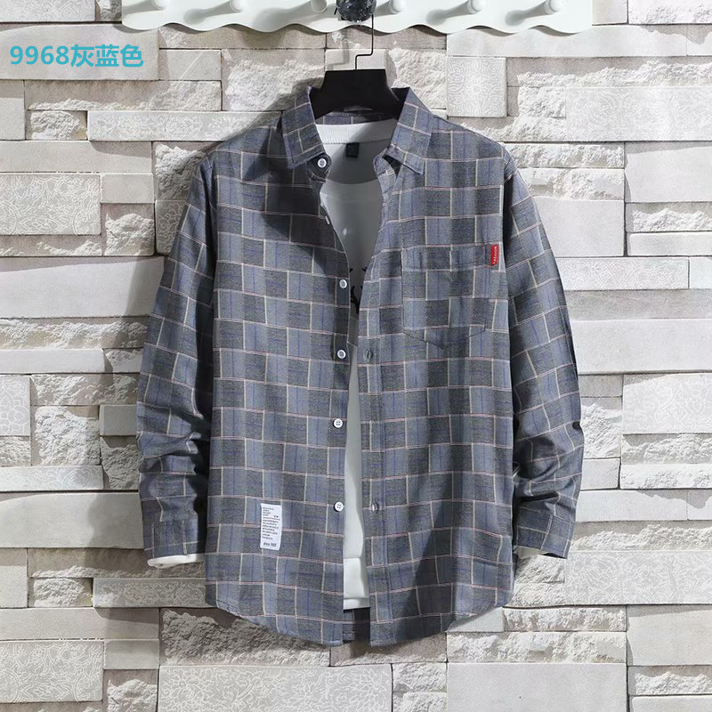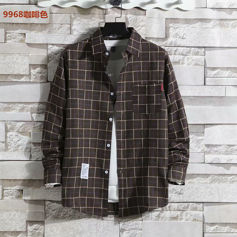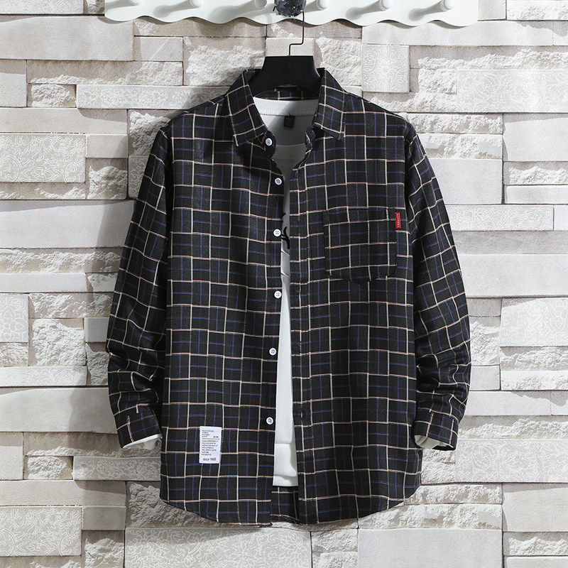 봄과 가을 홍콩 스타일 체크 무늬 셔츠 남성용 긴팔 한국 스타일 유행 셔츠 얇은 캐주얼 모든 매치 셔츠 재킷스토어 가기