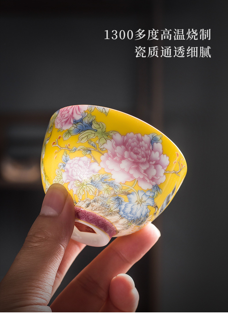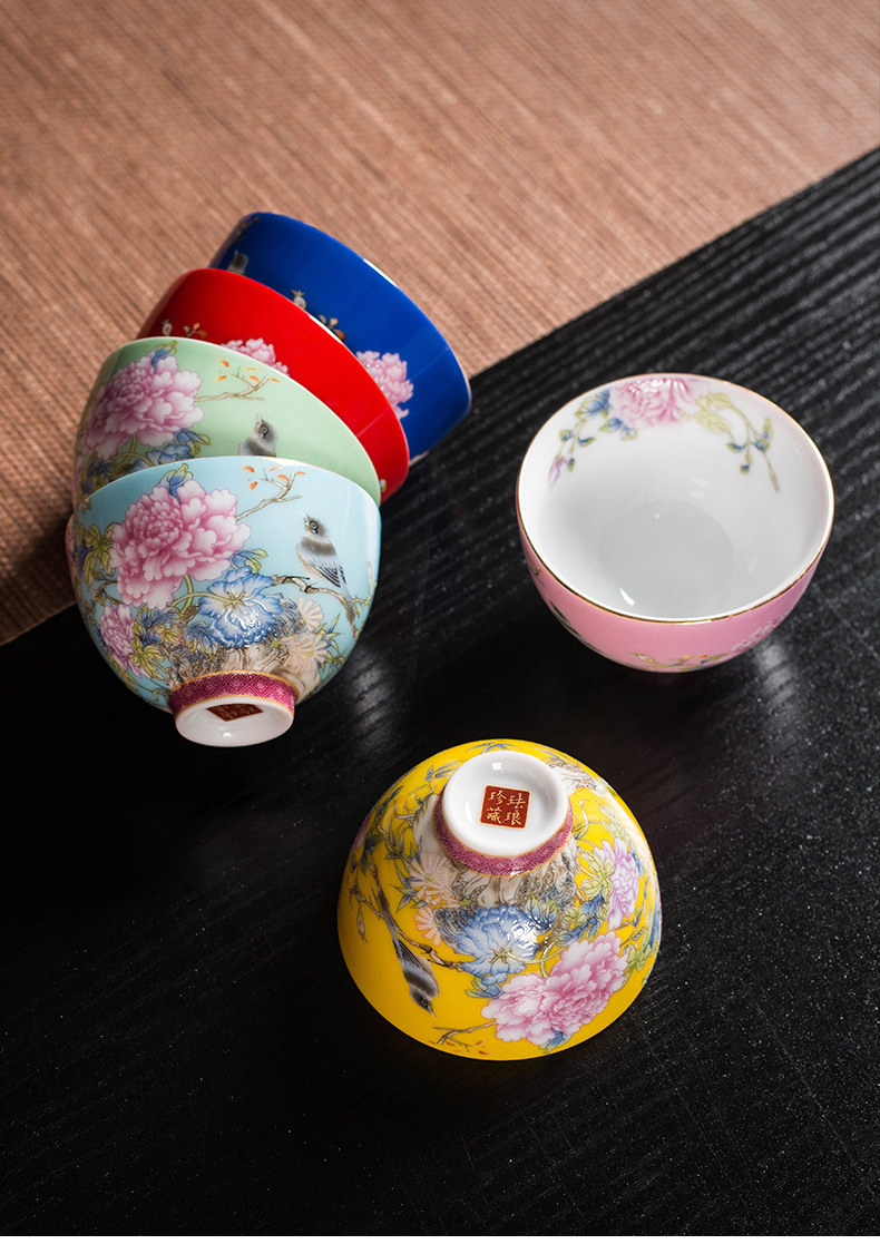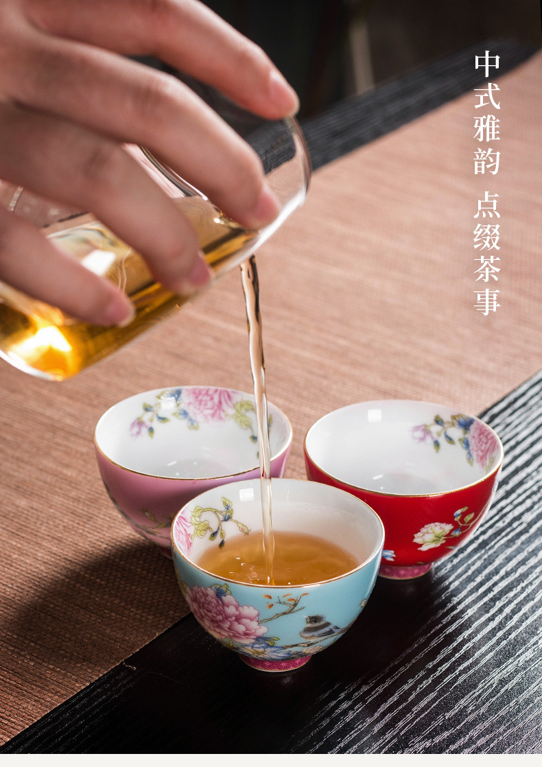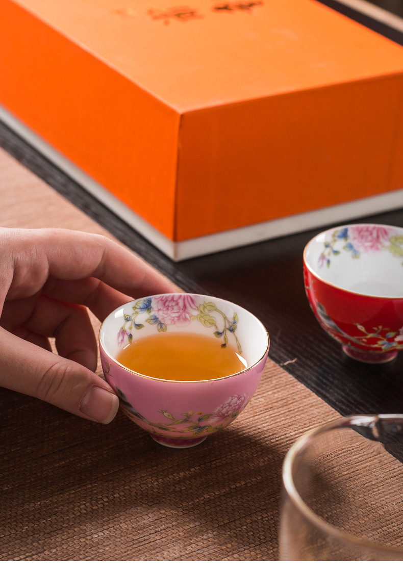 에나멜 컬러 티 컵 세라믹 마스터 컵 홈 티 시음 컵 선물 상자 궁전 스타일 쿵푸 차 세트 고급 동반 행사스토어 가기