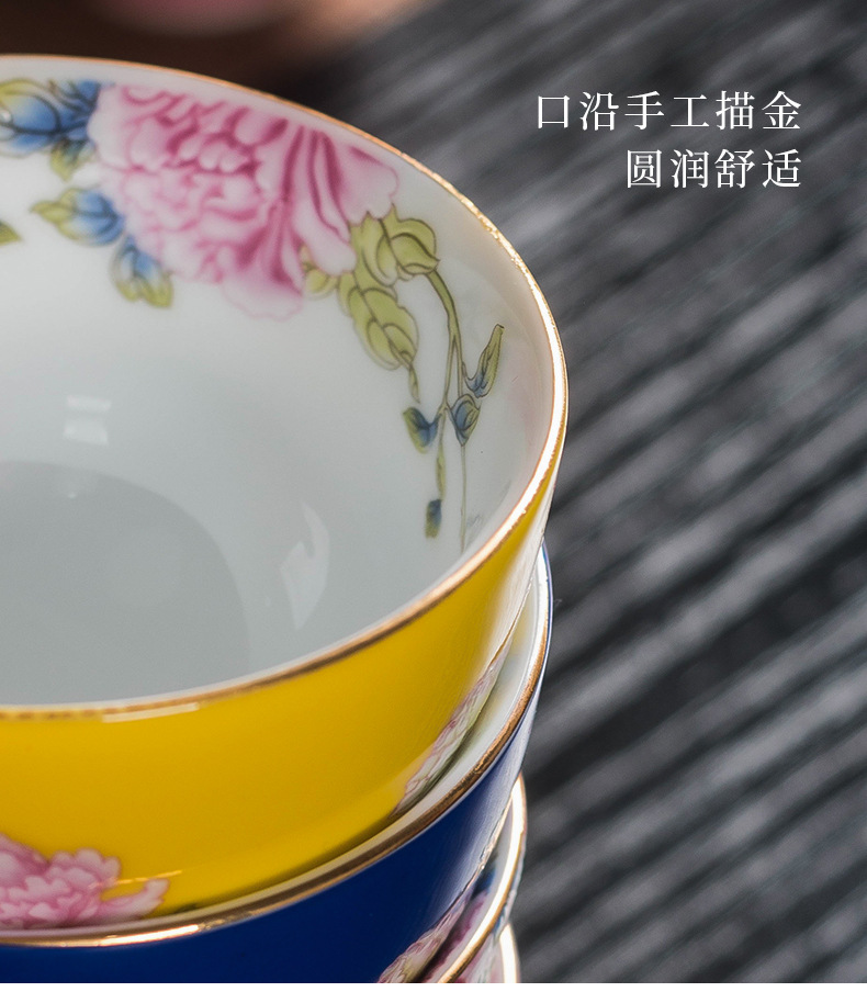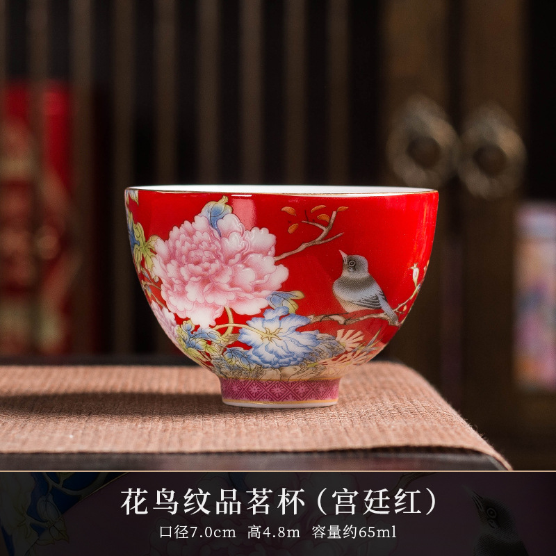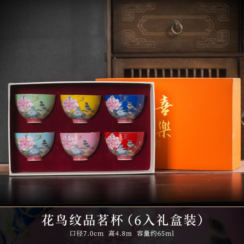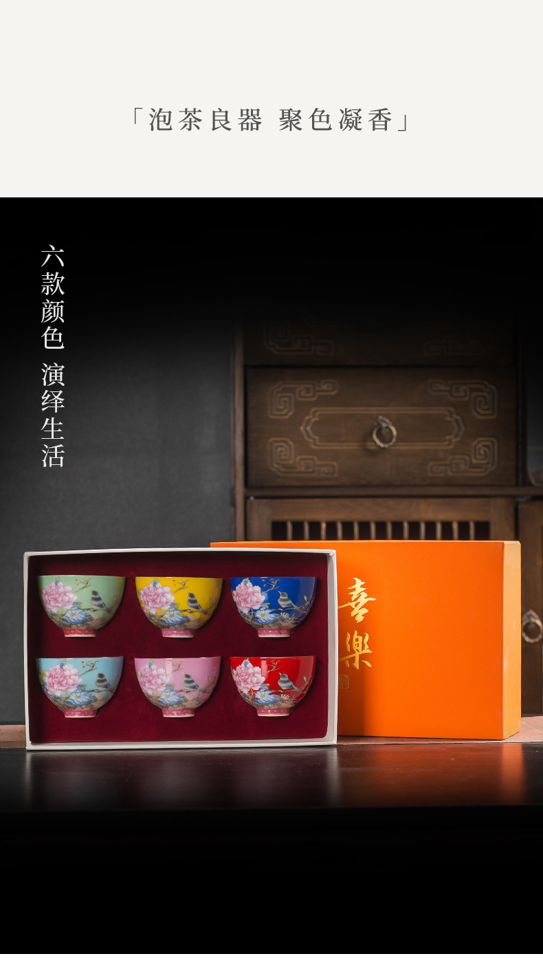 에나멜 컬러 티 컵 세라믹 마스터 컵 홈 티 시음 컵 선물 상자 궁전 스타일 쿵푸 차 세트 고급 동반 행사스토어 가기