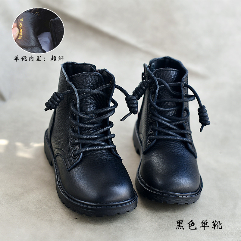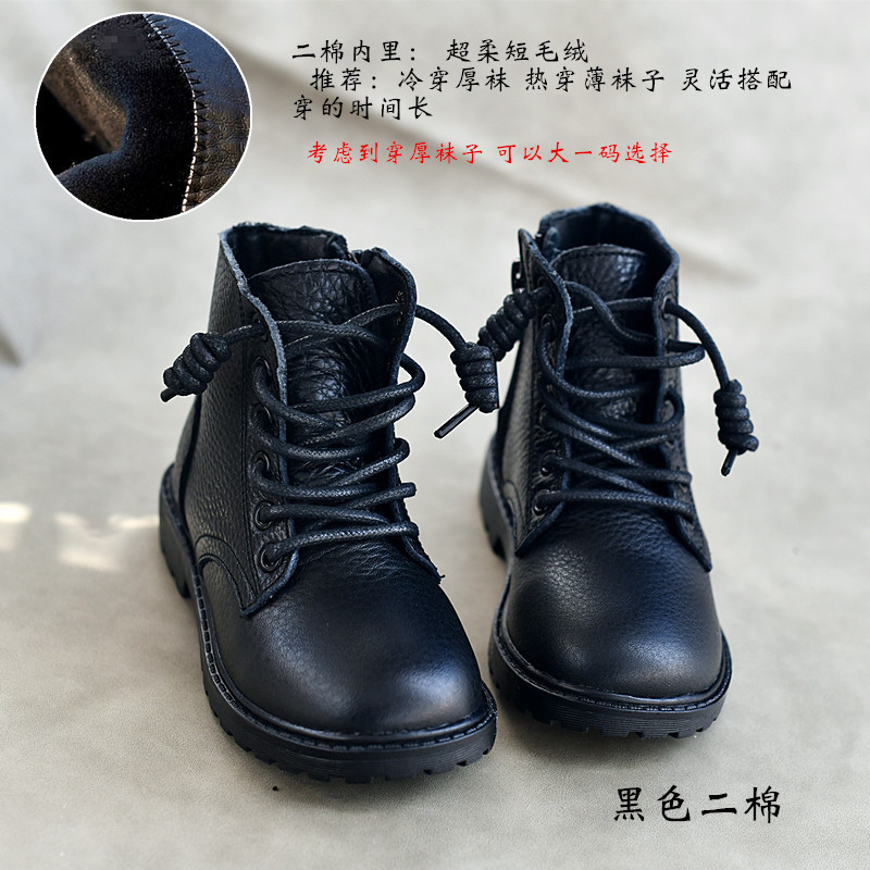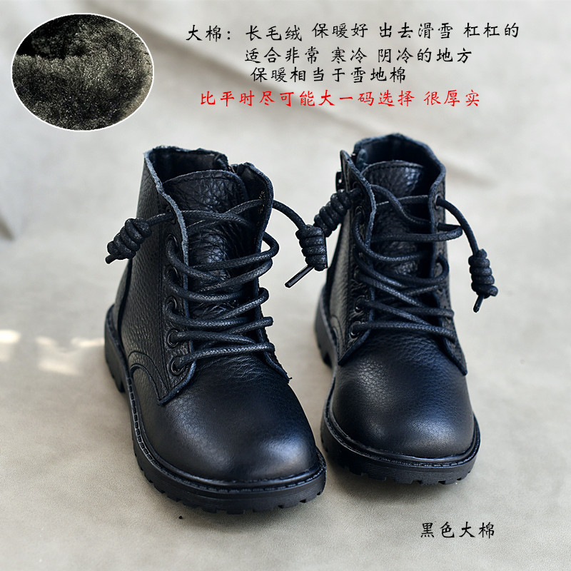정품 가죽 탑 레이어 Cowhide 한국식 마틴 부츠 소녀 쇼트 부츠 겨울 보이즈 코튼 부츠 어린이 신발 가죽 부츠 이베이