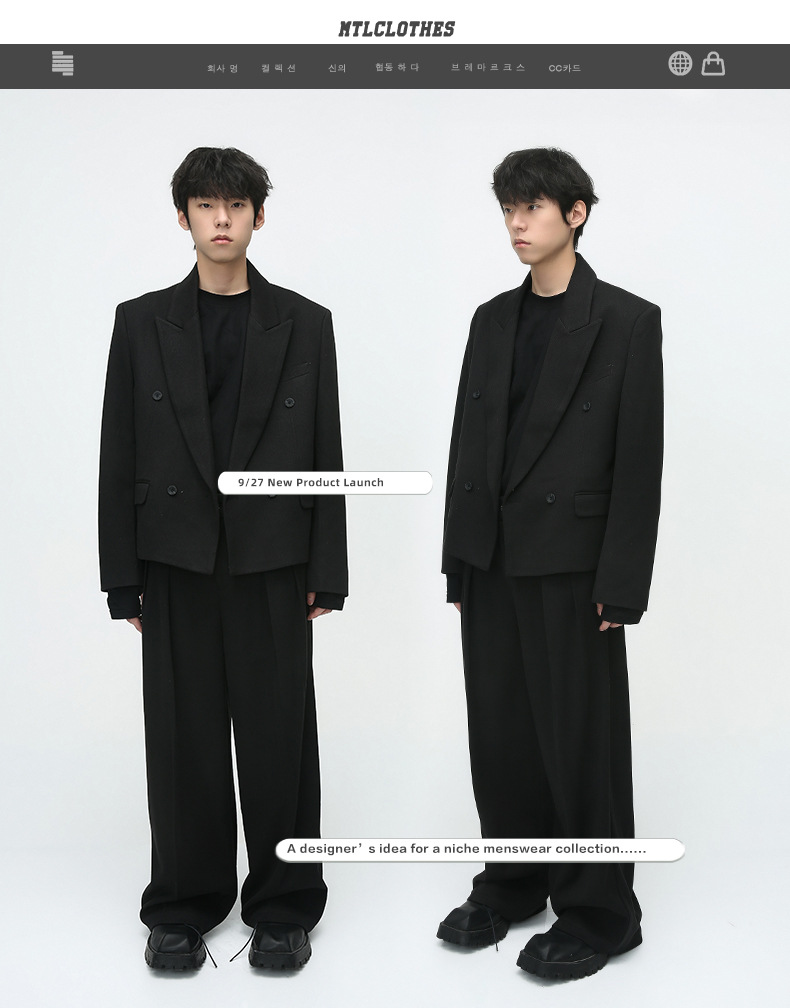 MTLCLOTHES 남성복 | 한국 스타일 심플하고 성숙한 분위기의 숏 패딩 숄더 슈트 단색 캐주얼 정장 트렌디스토어 가기