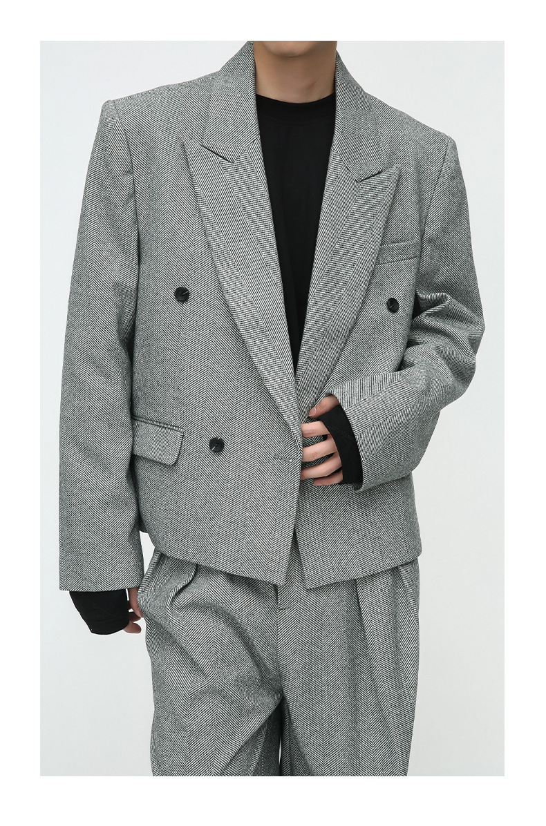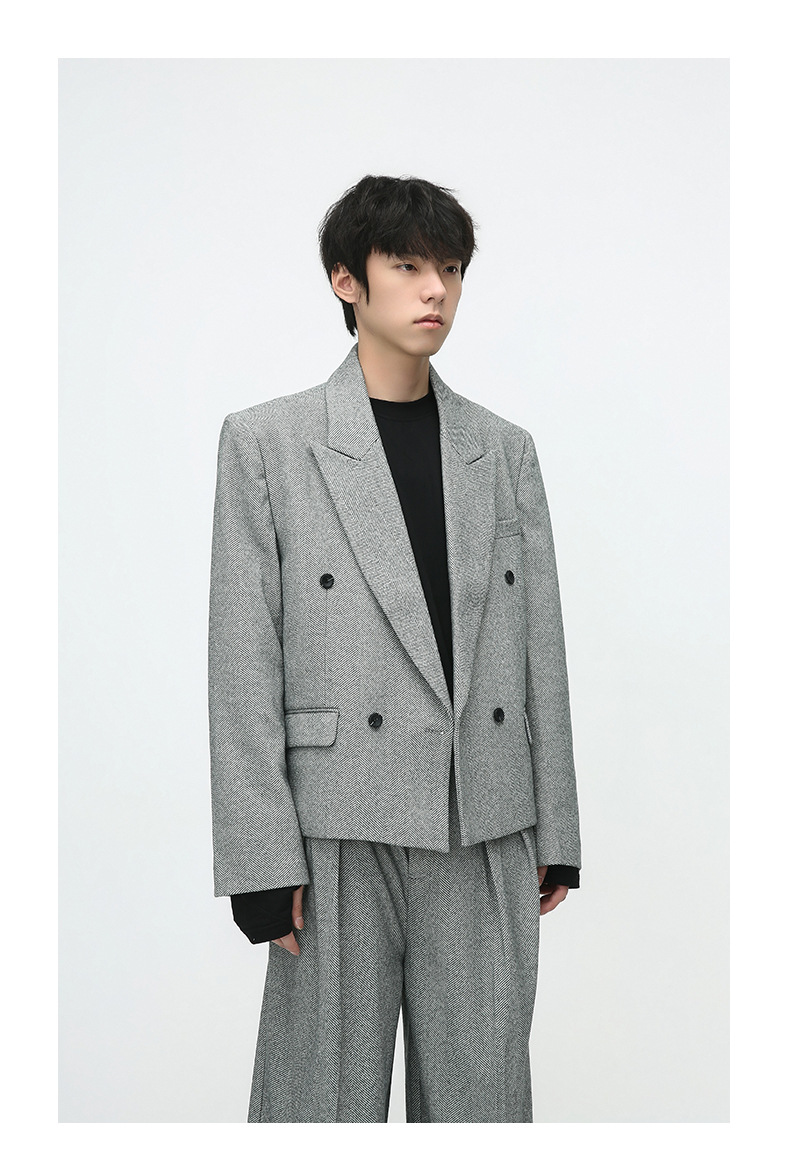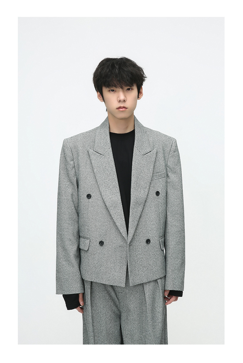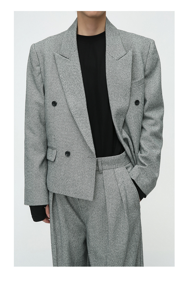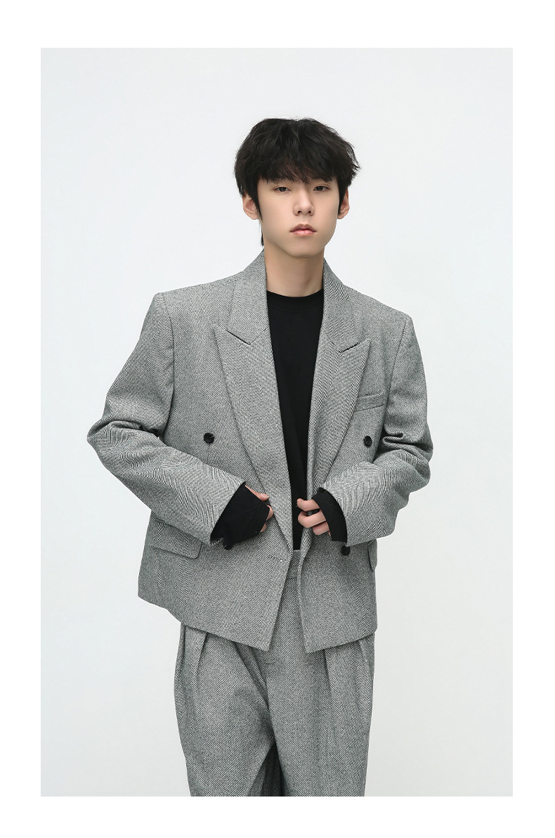 MTLCLOTHES 남성복 | 한국 스타일 심플하고 성숙한 분위기의 숏 패딩 숄더 슈트 단색 캐주얼 정장 트렌디