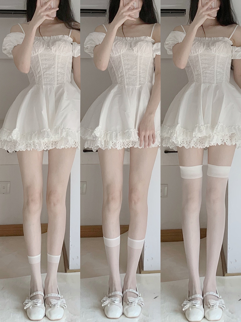 밀크 화이트 jk 송아지 아이스 실크 양말 여성용 여름 얇은 검은 색 긴 무릎 양말 투명 짧은 양말스토어 가기
