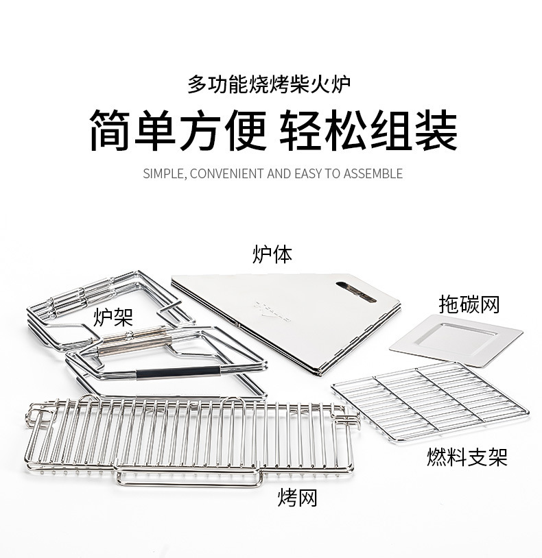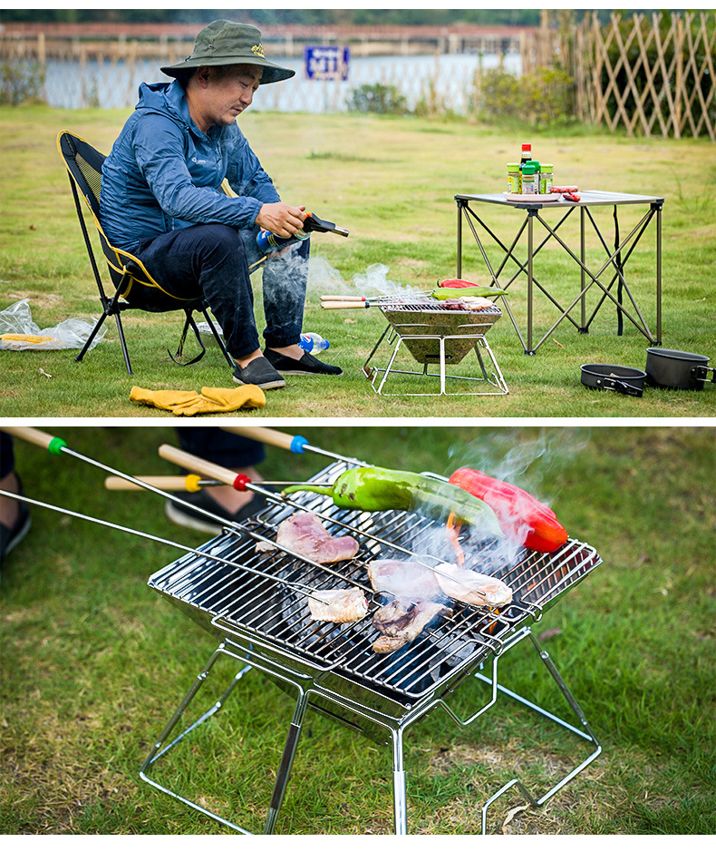 야외 캠핑 스테인레스 스틸 바베큐 그릴 그릴 그릴 이동식 숯 그릴 피크닉 바베큐 도구를 올릴 수 있습니다