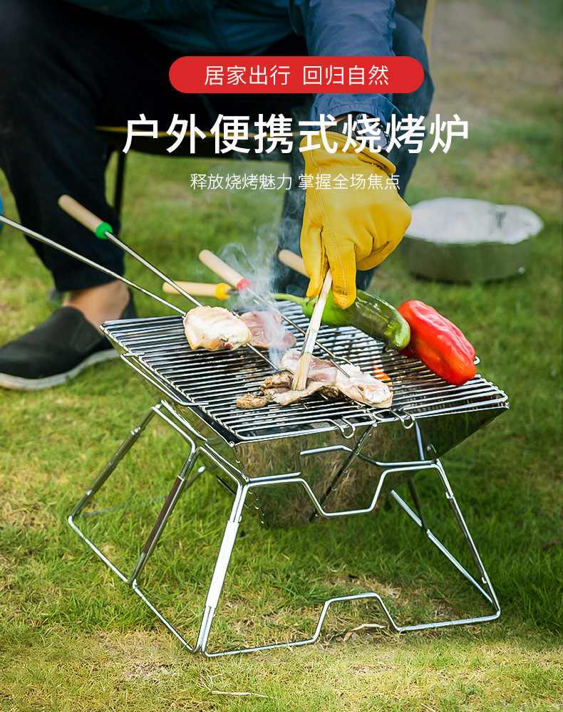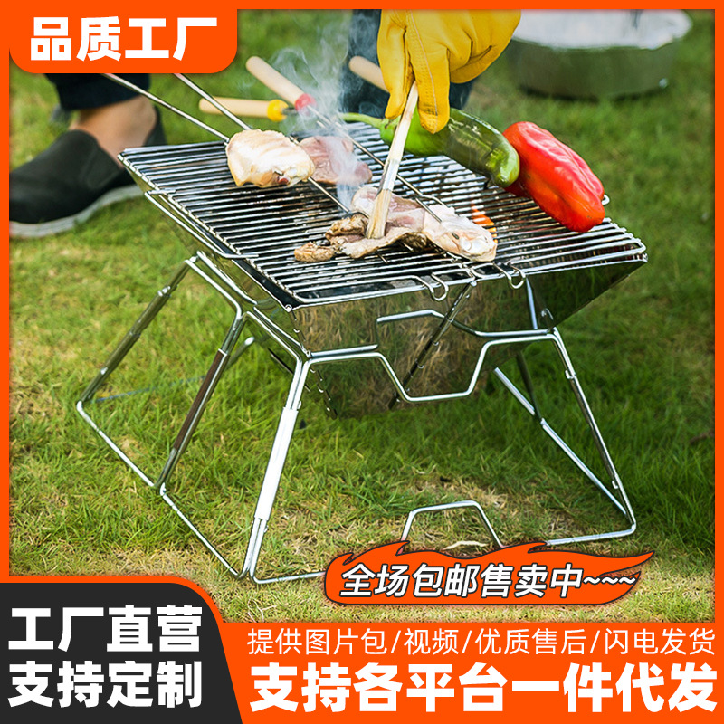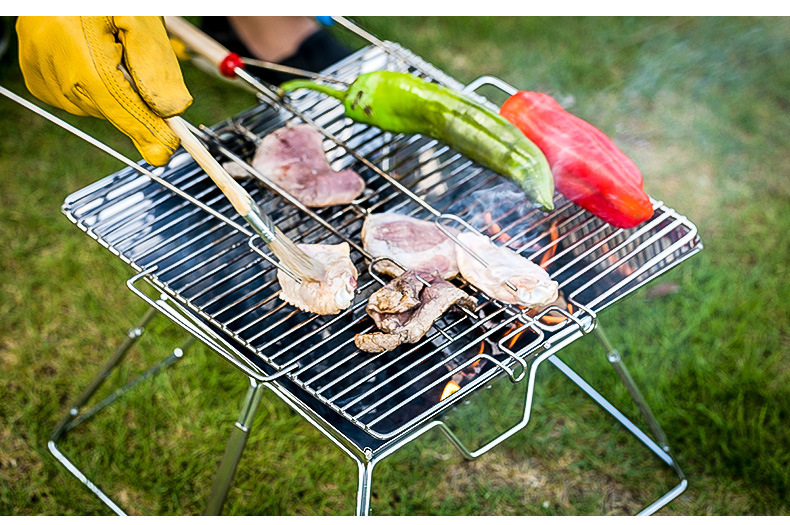 야외 캠핑 스테인레스 스틸 바베큐 그릴 그릴 그릴 이동식 숯 그릴 피크닉 바베큐 도구를 올릴 수 있습니다스토어 가기