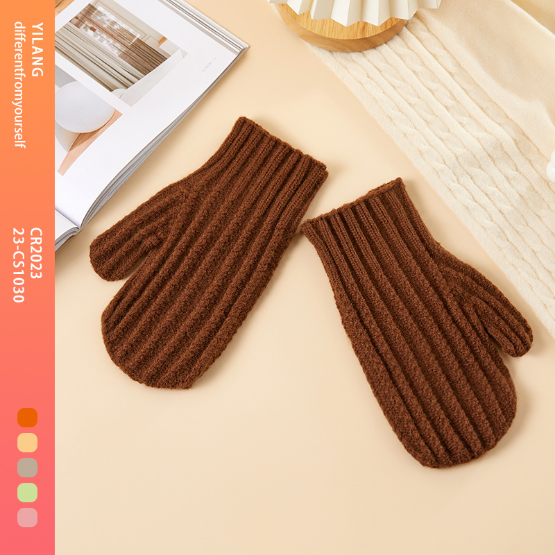 2025년 가을 겨울 신제품 니트 장갑, 보온 및 플리스 안감, 방한, 남녀공용, 손가락 전체 커버 장갑, 야외 라이딩용