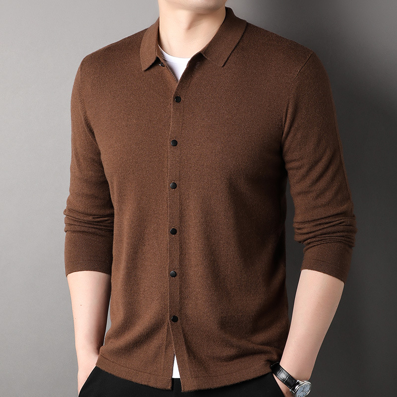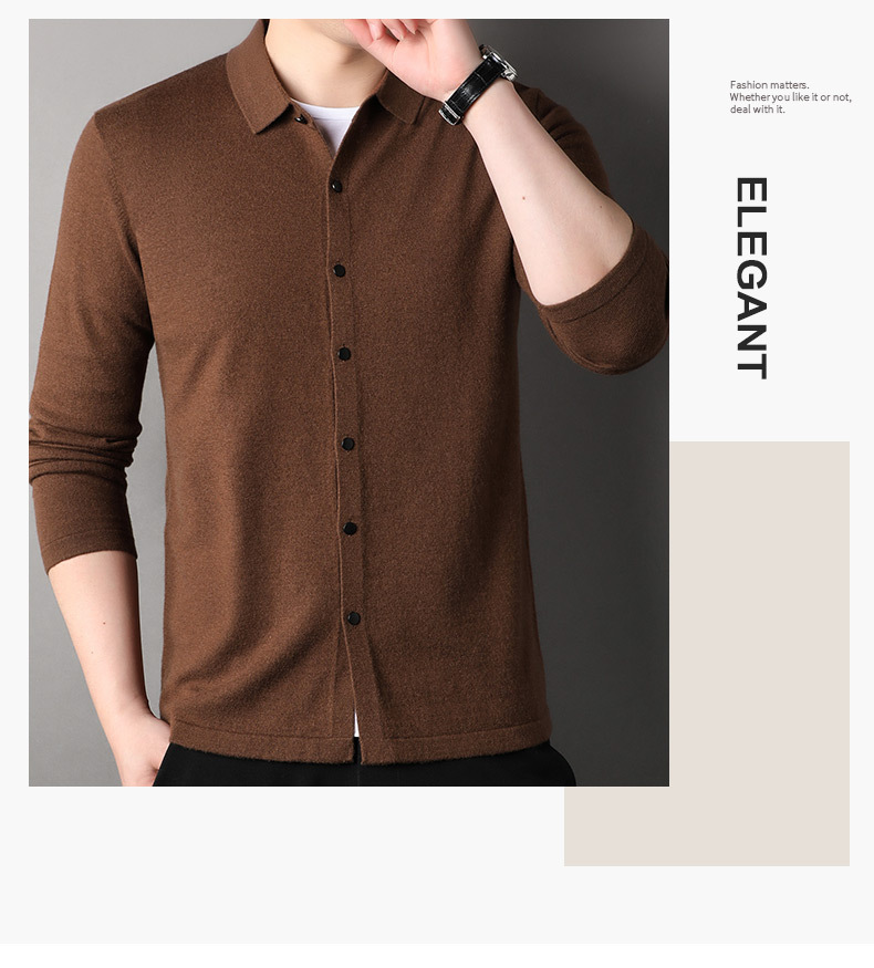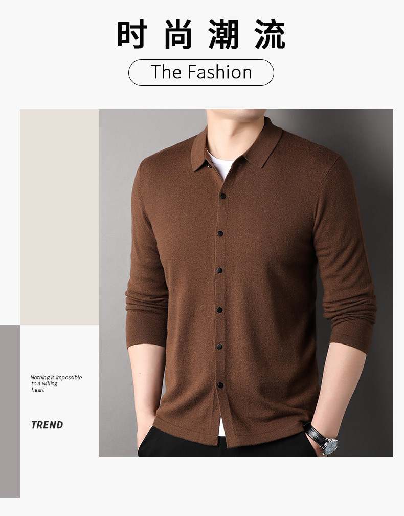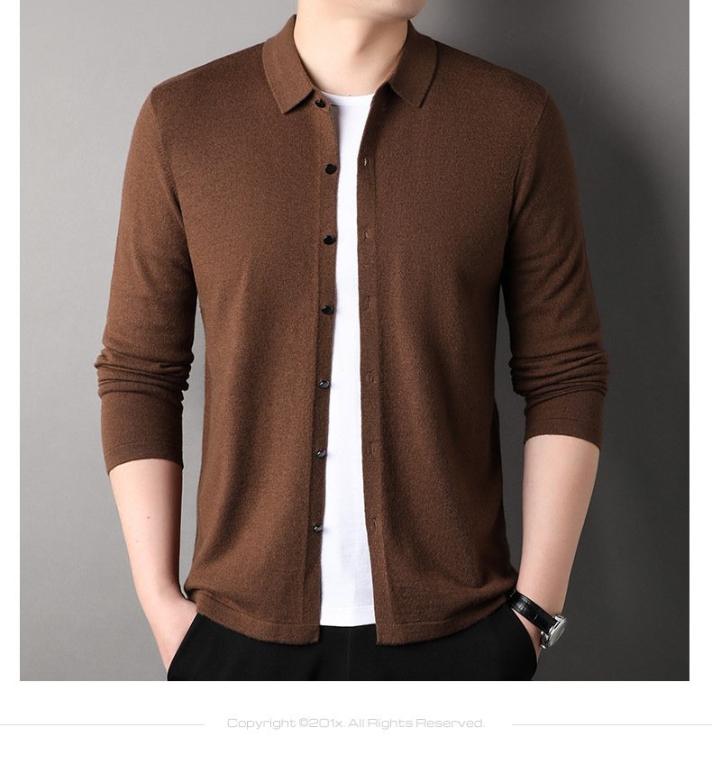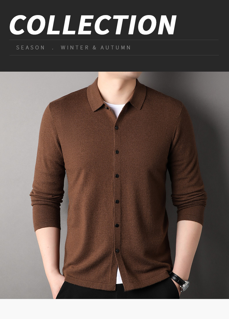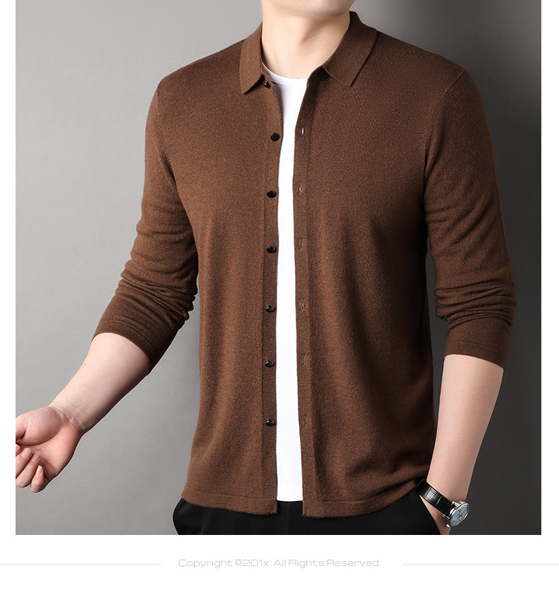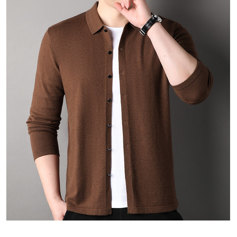 100 퓨어 울 가디건 남성용 라펠 가을과 겨울 Puyuan 울 스웨터 모든 매치 스웨터 니트 탑 캐주얼 재킷