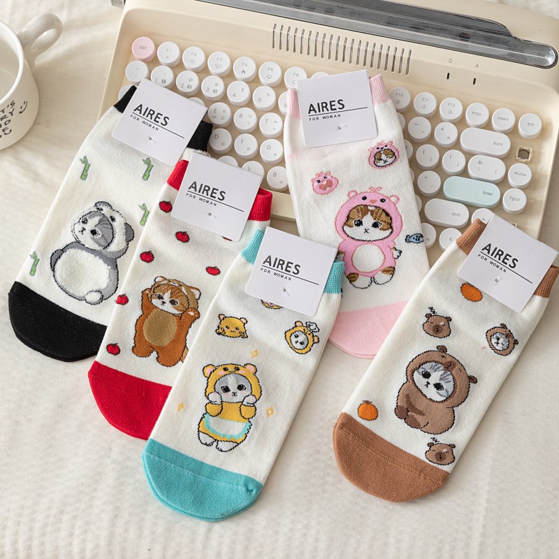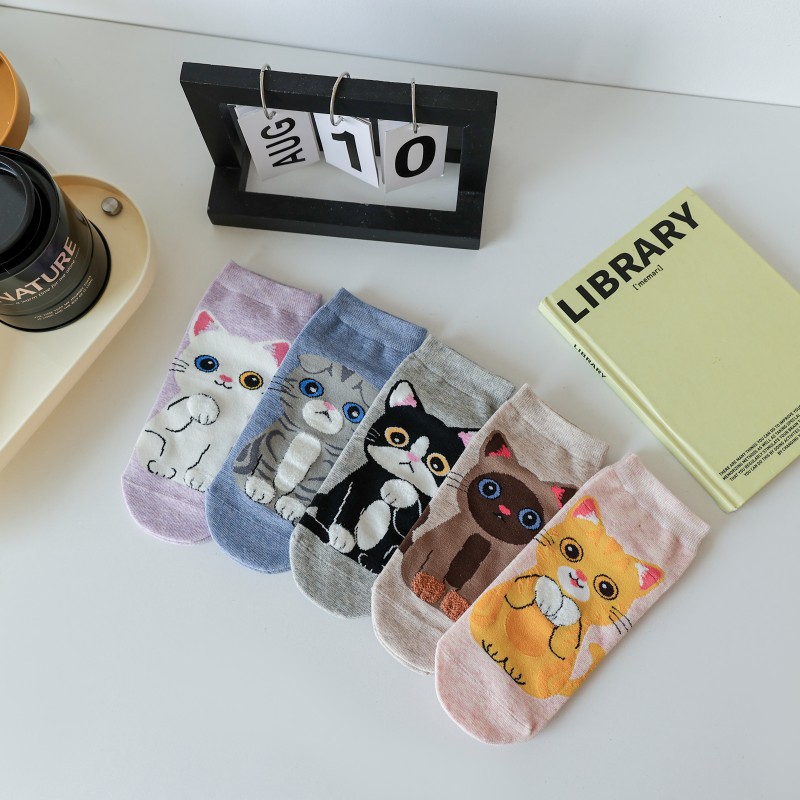 여성을위한 봄과 가을 새로운 스타일 양말 만화 귀여운 고양이 입체 스트레이트 양말 한국 스타일 여성 보트 양말 제조 업체 도매스토어 가기