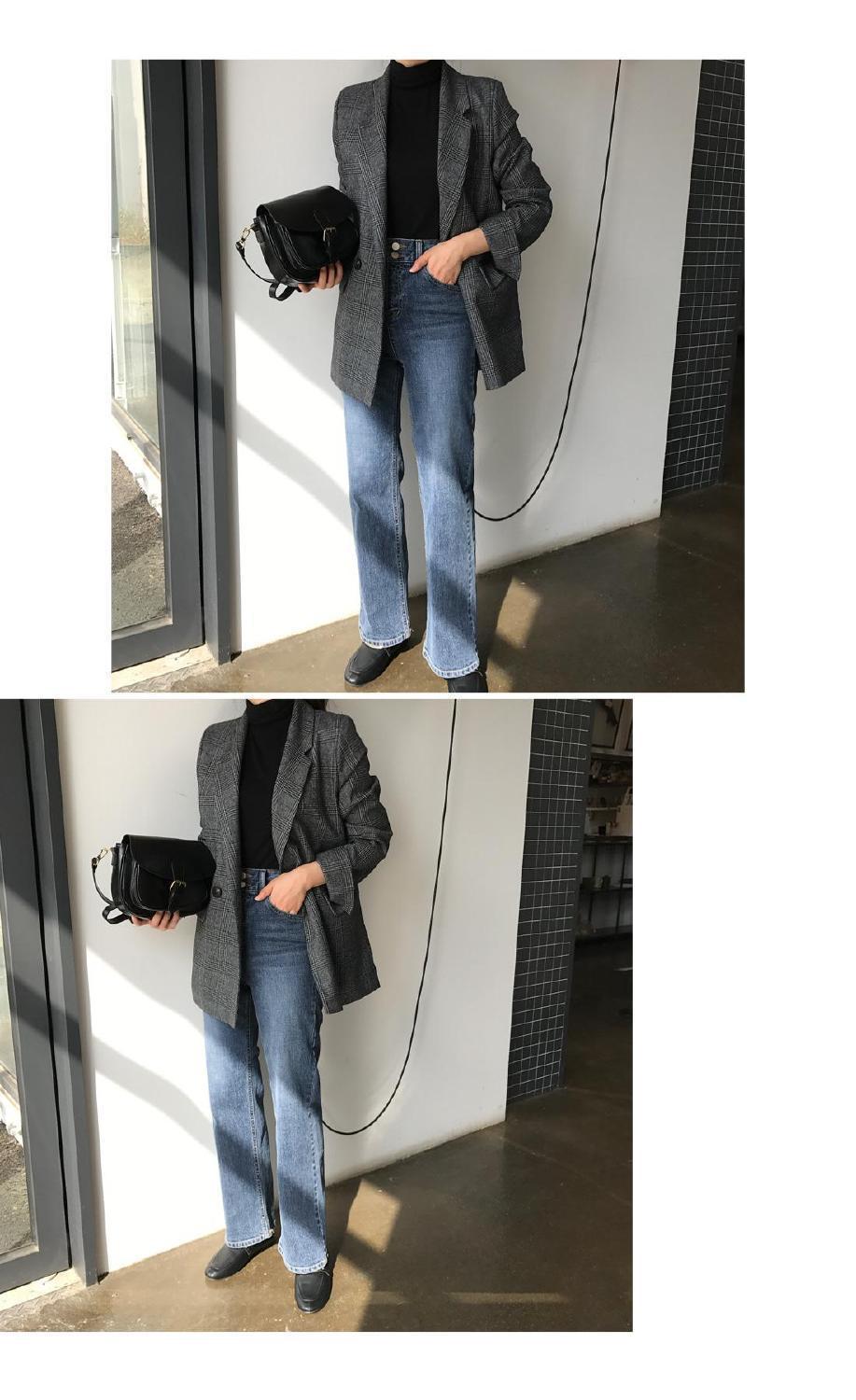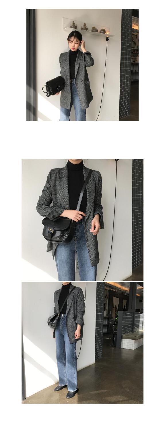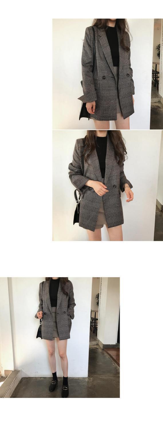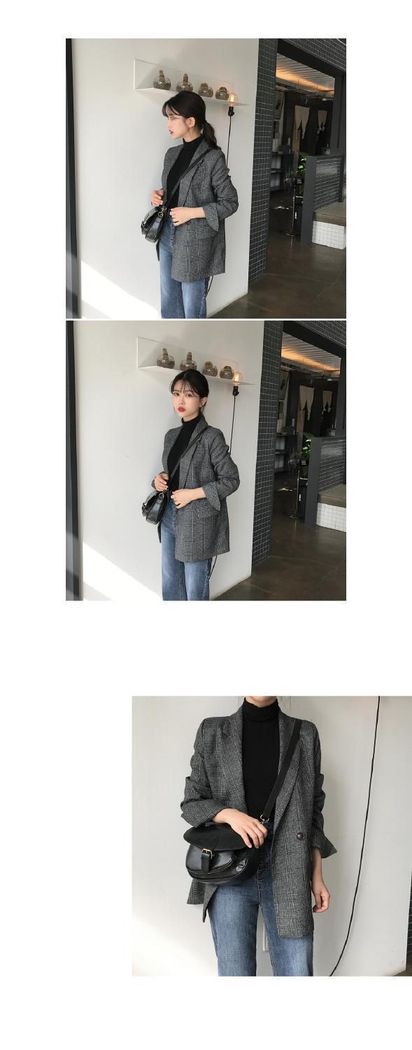 한국 2023 이른 가을 빈티지 간단한 격자 무늬 옷깃 두 버클 느슨한 더블 포켓 긴 소매 작은 세트 재킷 여성용스토어 가기