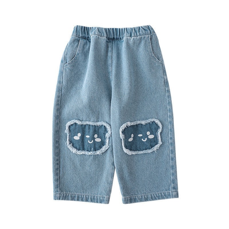 Wurib 한 소녀 청바지 봄과 가을 새로운 어린이 캐주얼 바지 아기 만화 곰 스트레이트 바지