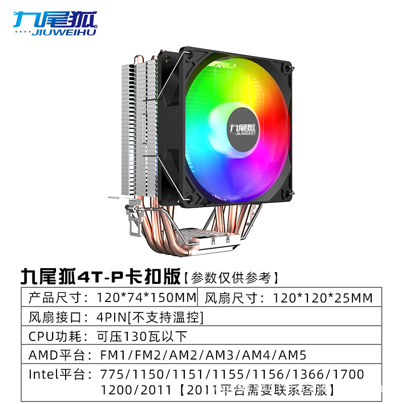 아홉 꼬리 여우 4T 데스크탑 컴퓨터 CPU 라디에이터 호스트 팬 4 구리 튜브 1151/1700AMD 멀티 플랫폼