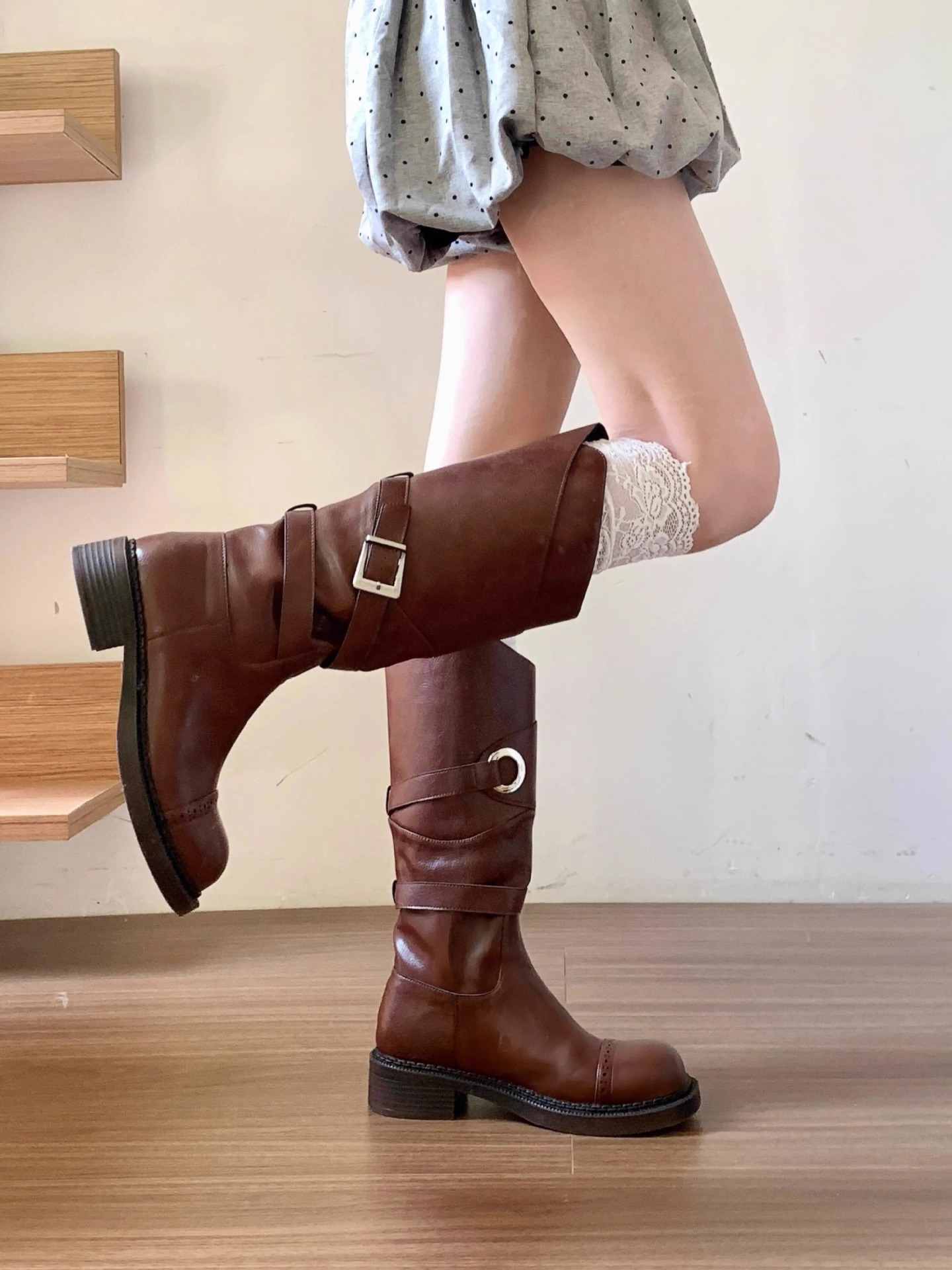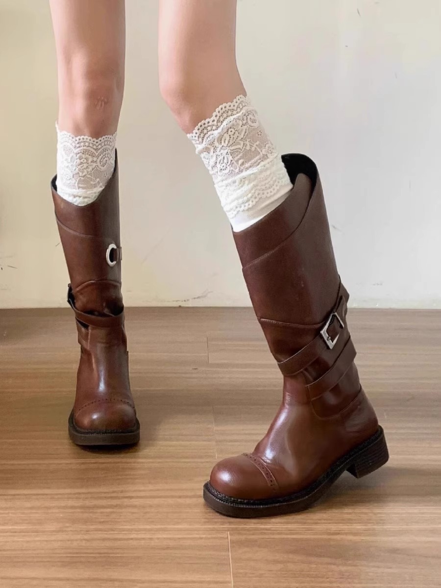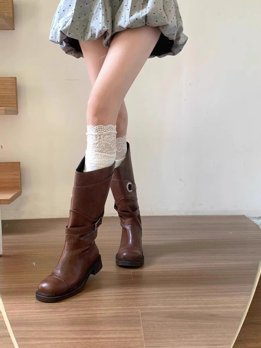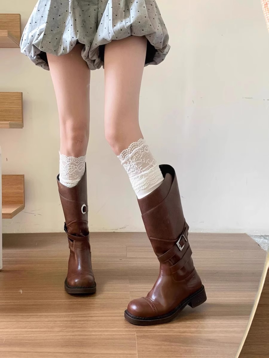 여성의 흰색 수직 줄무늬 레이스 양말 레이스 무릎 위 양말 틈새 유행 긴 파일 부츠 양말 Zhuji 도매스토어 가기