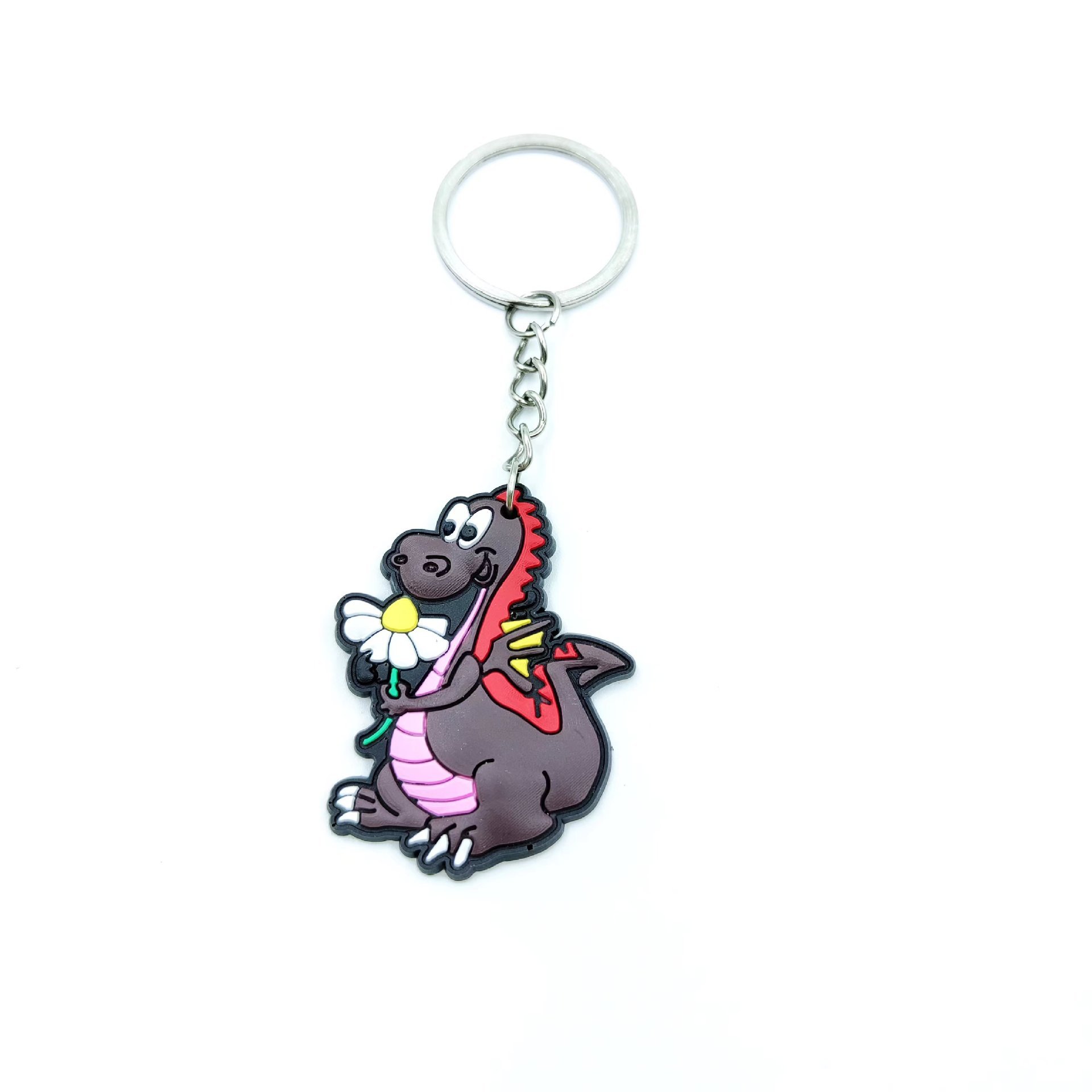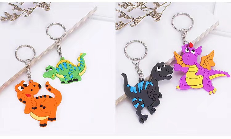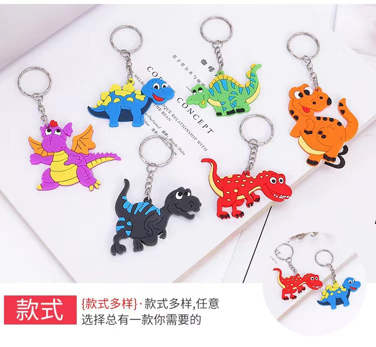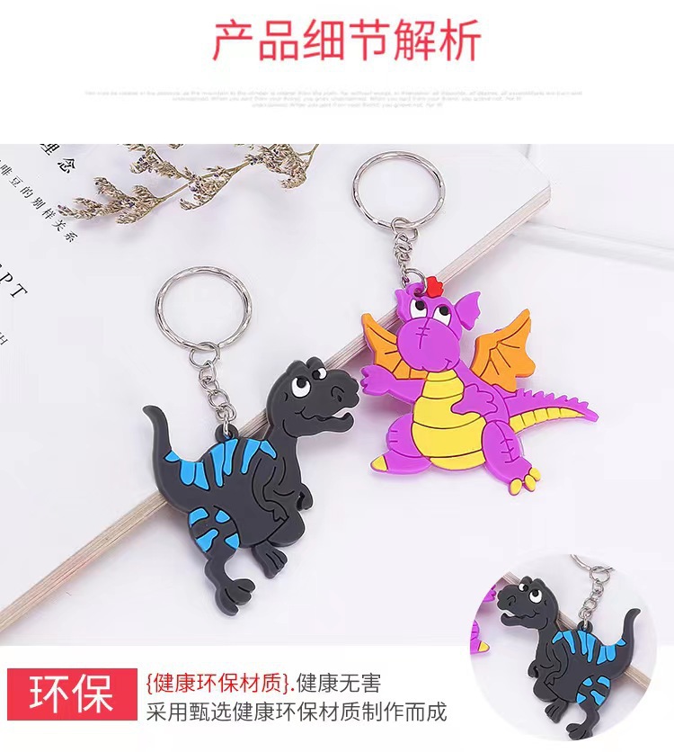 공장 직접 공룡 키 체인 PVC 드롭 접착제 단면 공룡 키 체인 프로모션 만화 공룡 액세서리 도매
