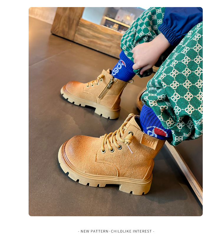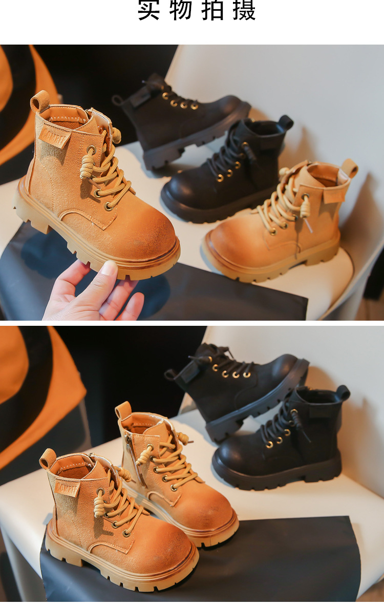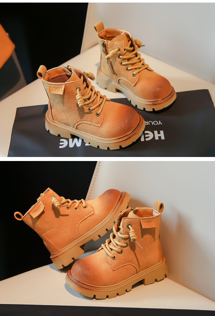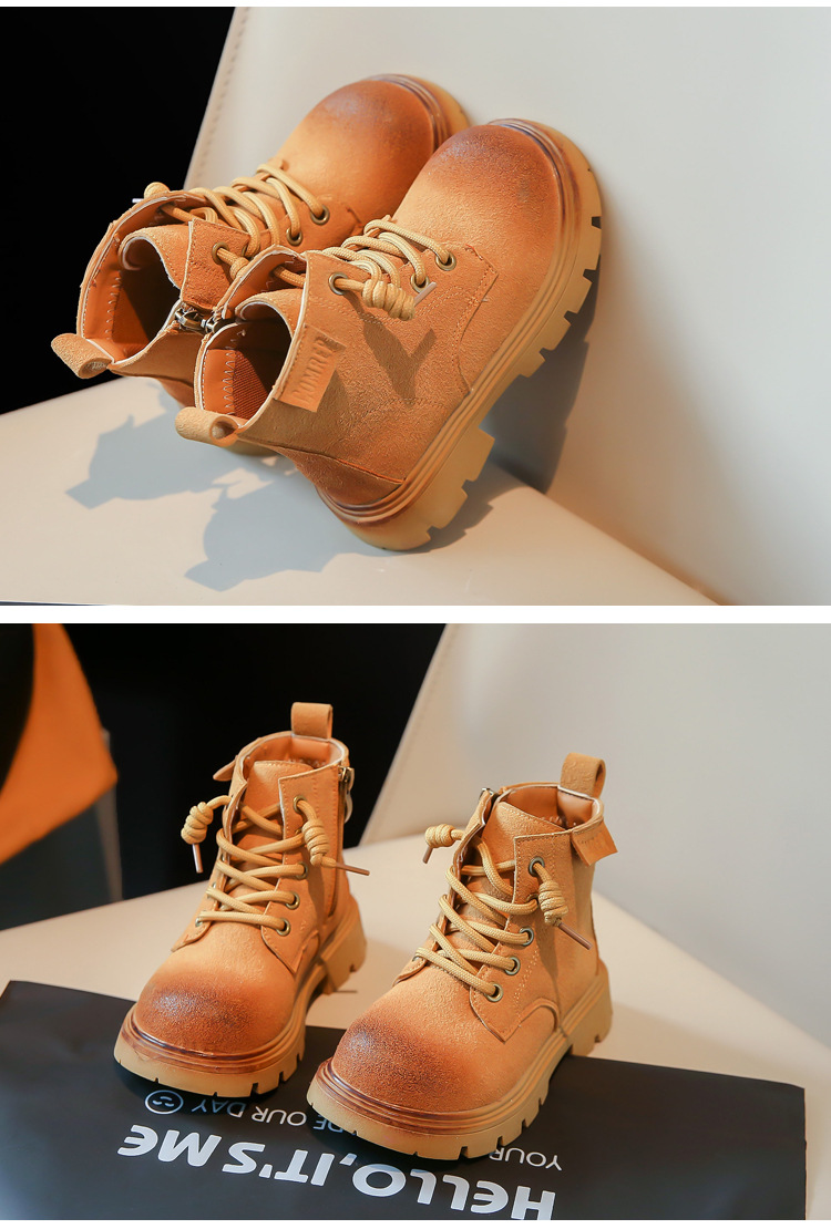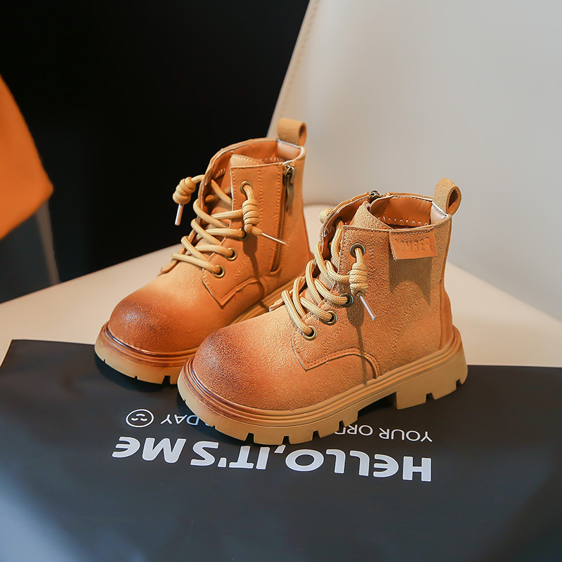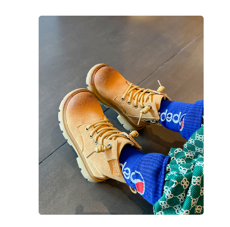 남아 트렌디 브랜드 짧은 부츠 2023 봄과 가을 새로운 스타일 샷 거리 여아 부츠 영국 스타일 마틴 부츠 어린이 노란 부츠스토어 가기