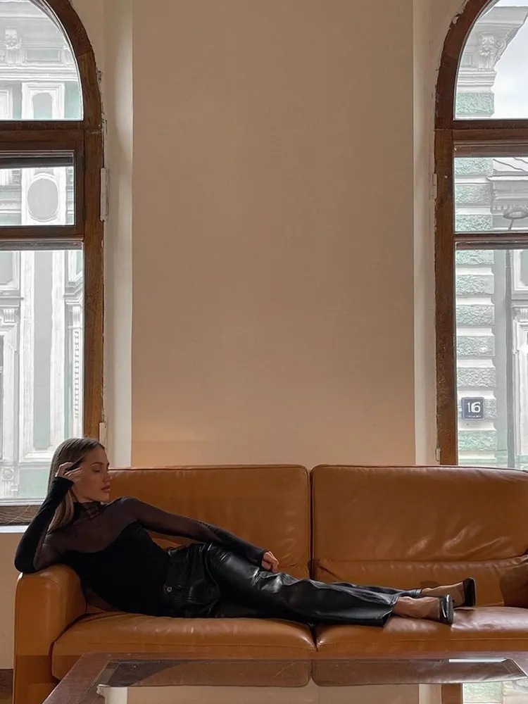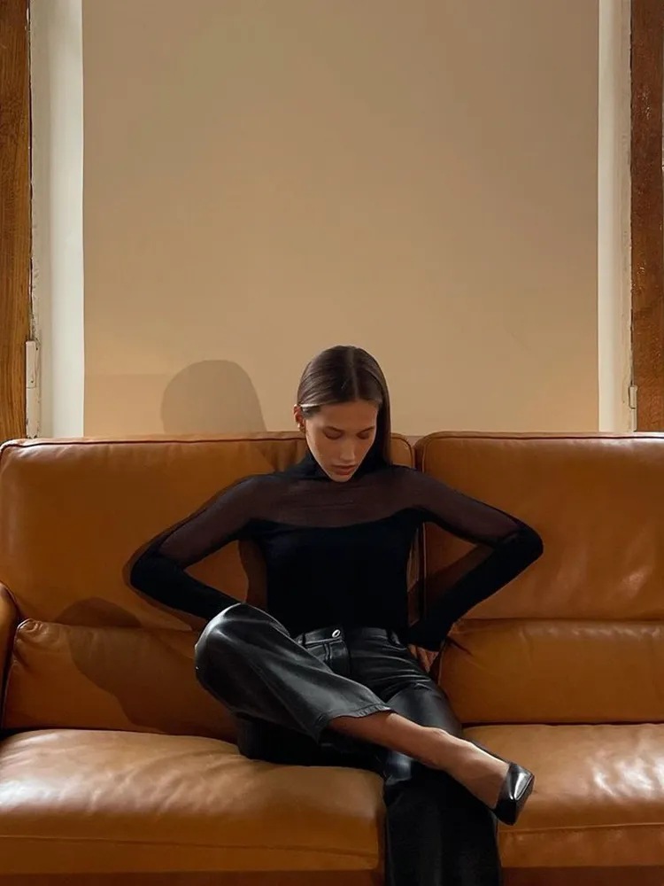 유럽과 미국 대외 무역 크로스 보더 여성용 AliExpress 아마존 섹시한 메쉬 스티칭 긴팔 점프 수트 탑 티셔츠스토어 가기