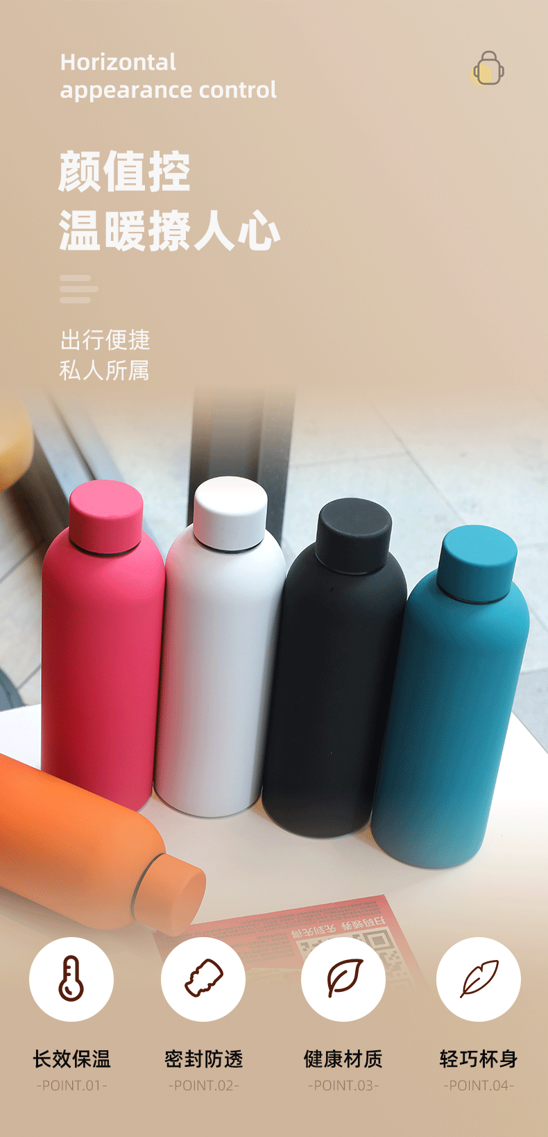 고무 페인트 스포츠 작은 입 병 보온병 이중 진공 304 스테인레스 스틸 콜라 병 크로스 보더 미국 작은 입 컵스토어 가기