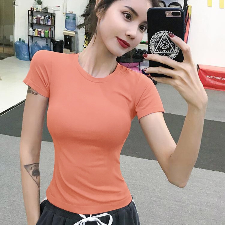 여름 간단한 패션 요가 옷 슬림 핏 슬리밍 인터넷 유명 인사 새로운 티셔츠 러닝 피트니스 탑 반팔 여성 스트레치스토어 가기