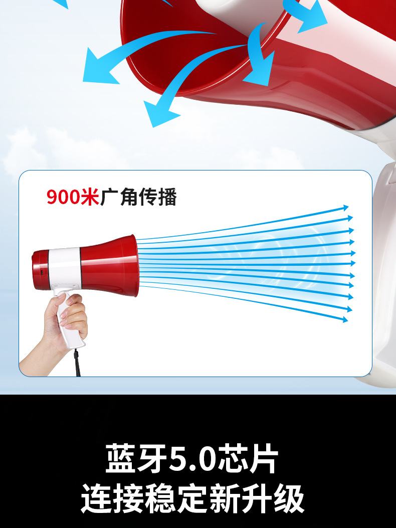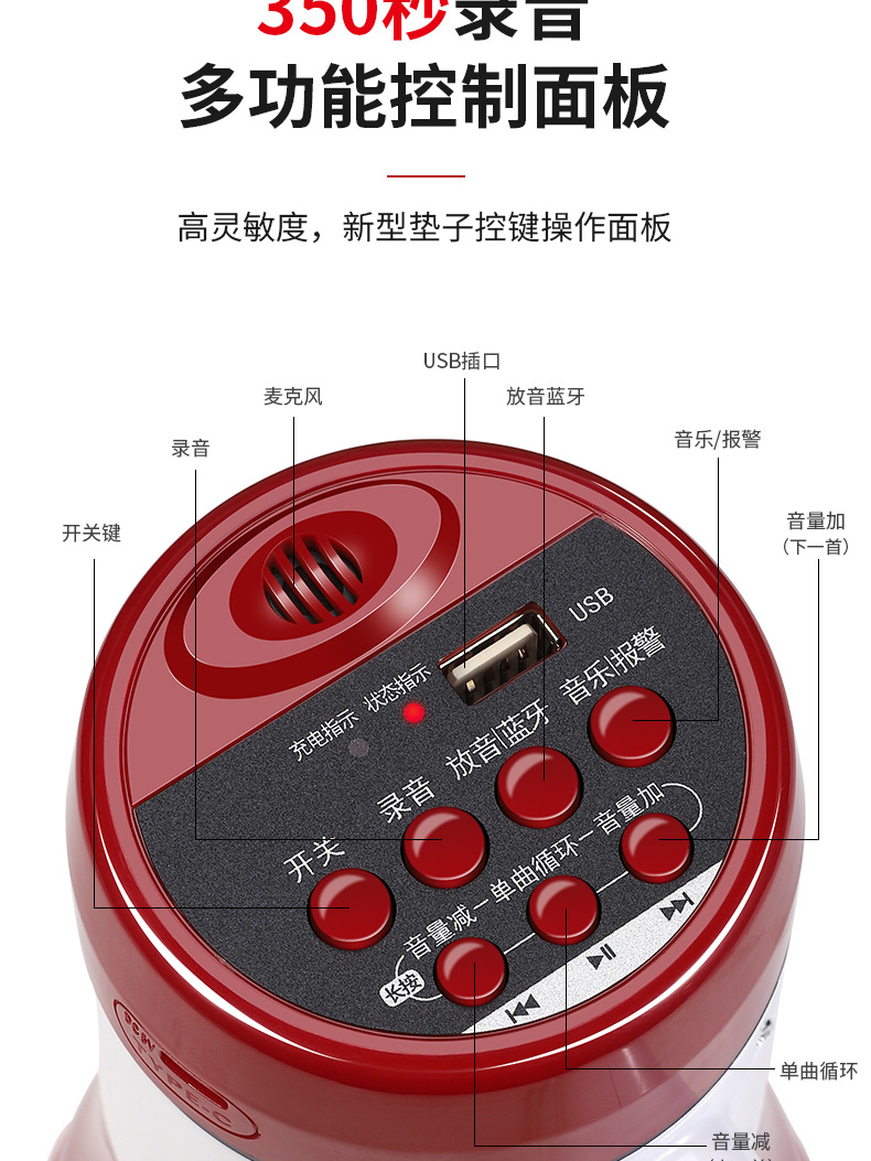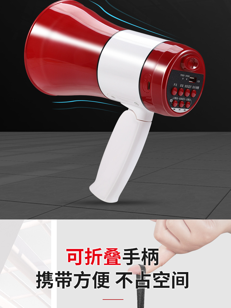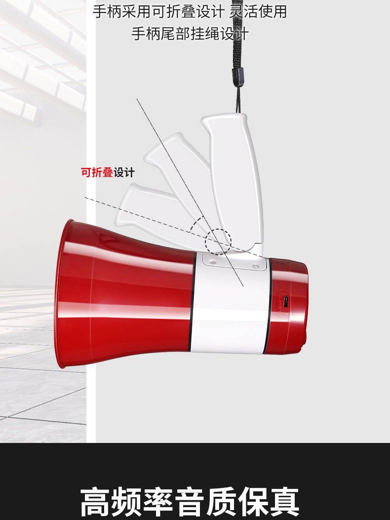 공장 도매 휴대용 리튬 배터리 메가폰 선전 호킹 무선 확성기 다기능 접이식 스피커 시끄러운 소리