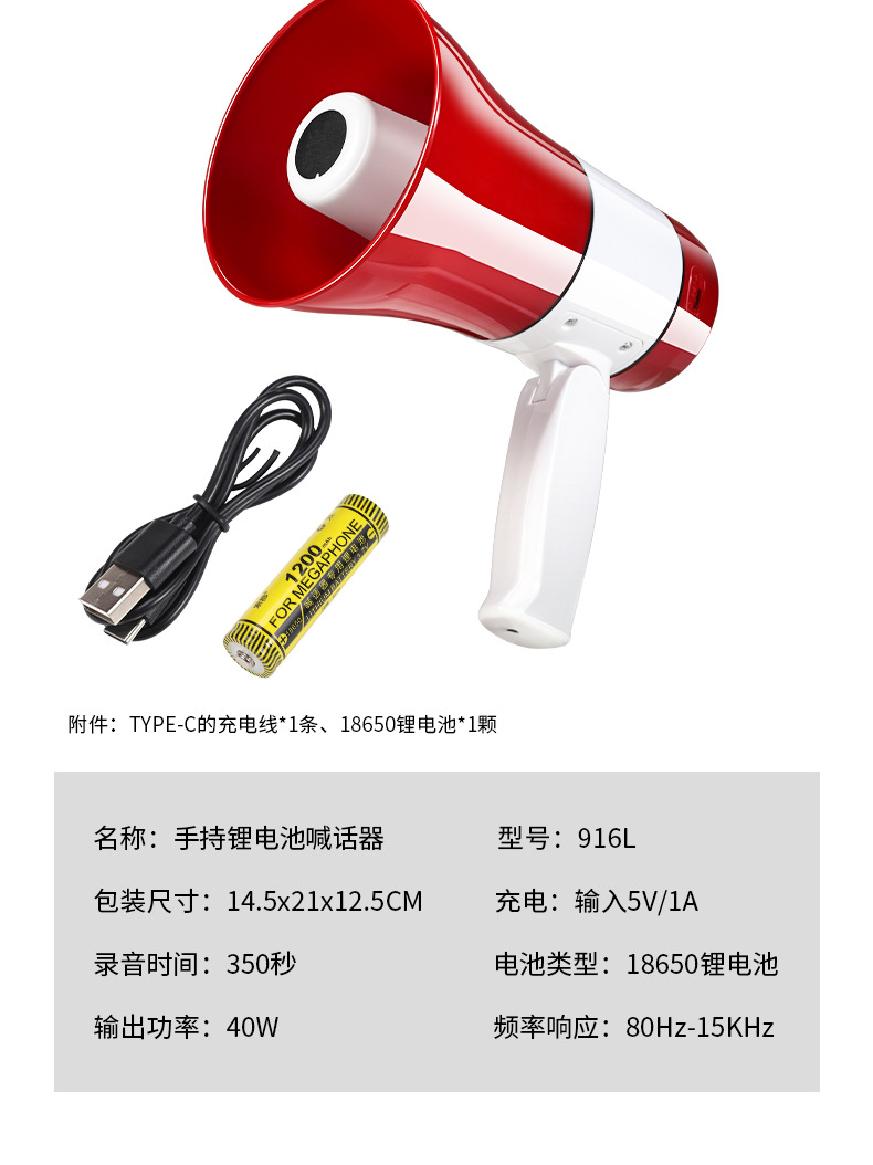 • 916L 접이식 손잡이 1200mAh 배터리 + 충전 케이블(350S 녹음 Bluetooth USB 포트)