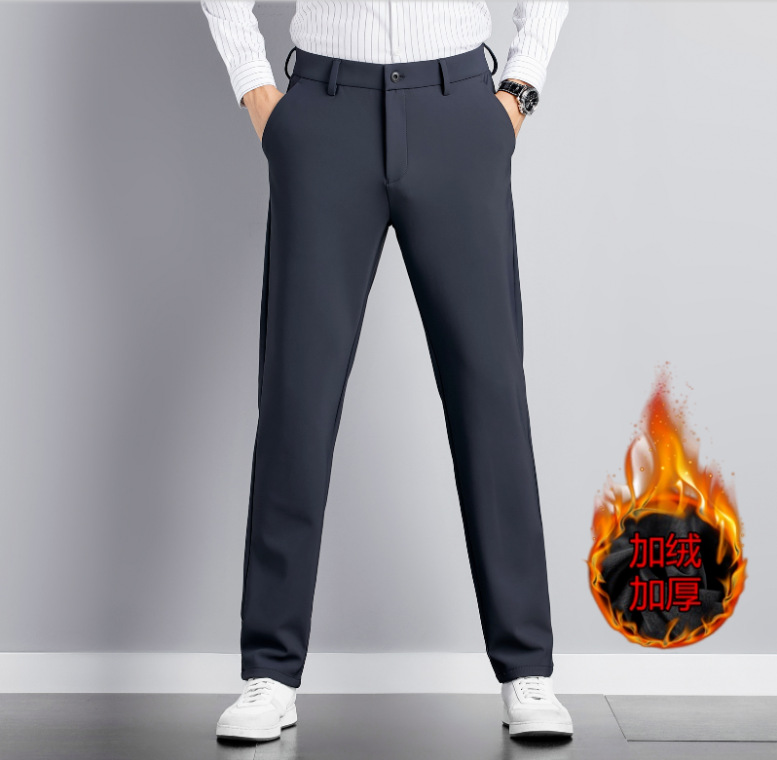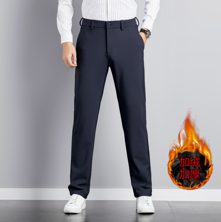 가을 두꺼운 고급 캐주얼 바지 남성 비즈니스 남성용 스트레치 청소년 스트레이트 바지 비 다림질 바지 남성용 바지