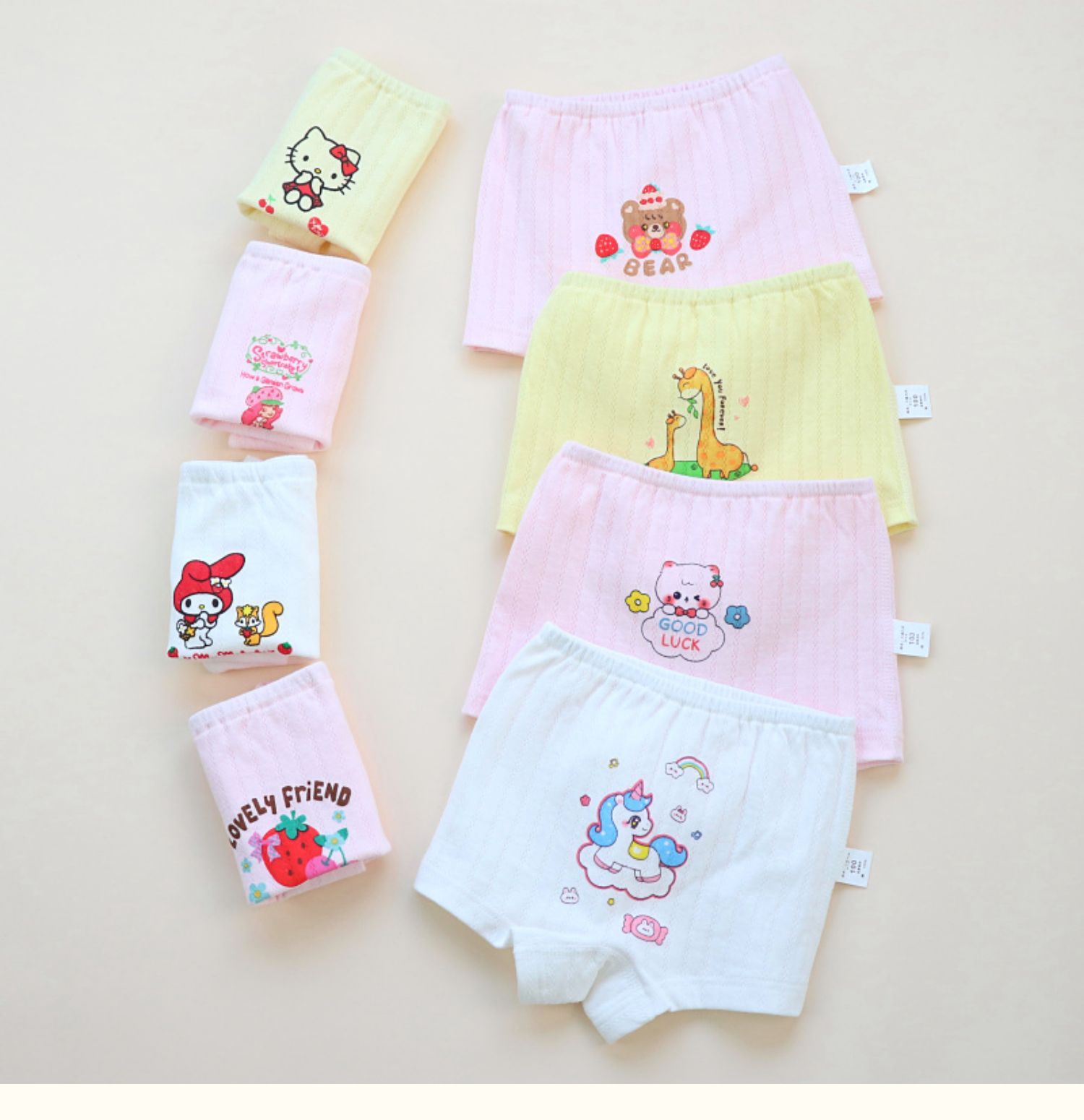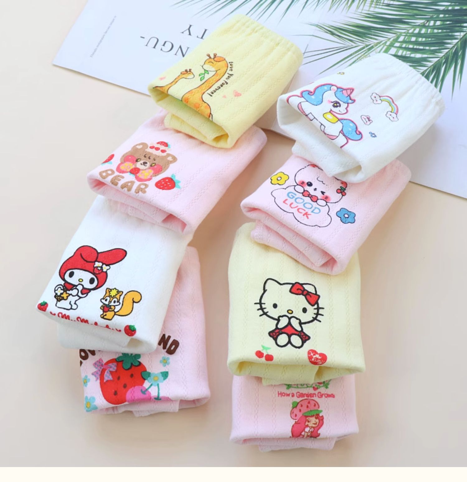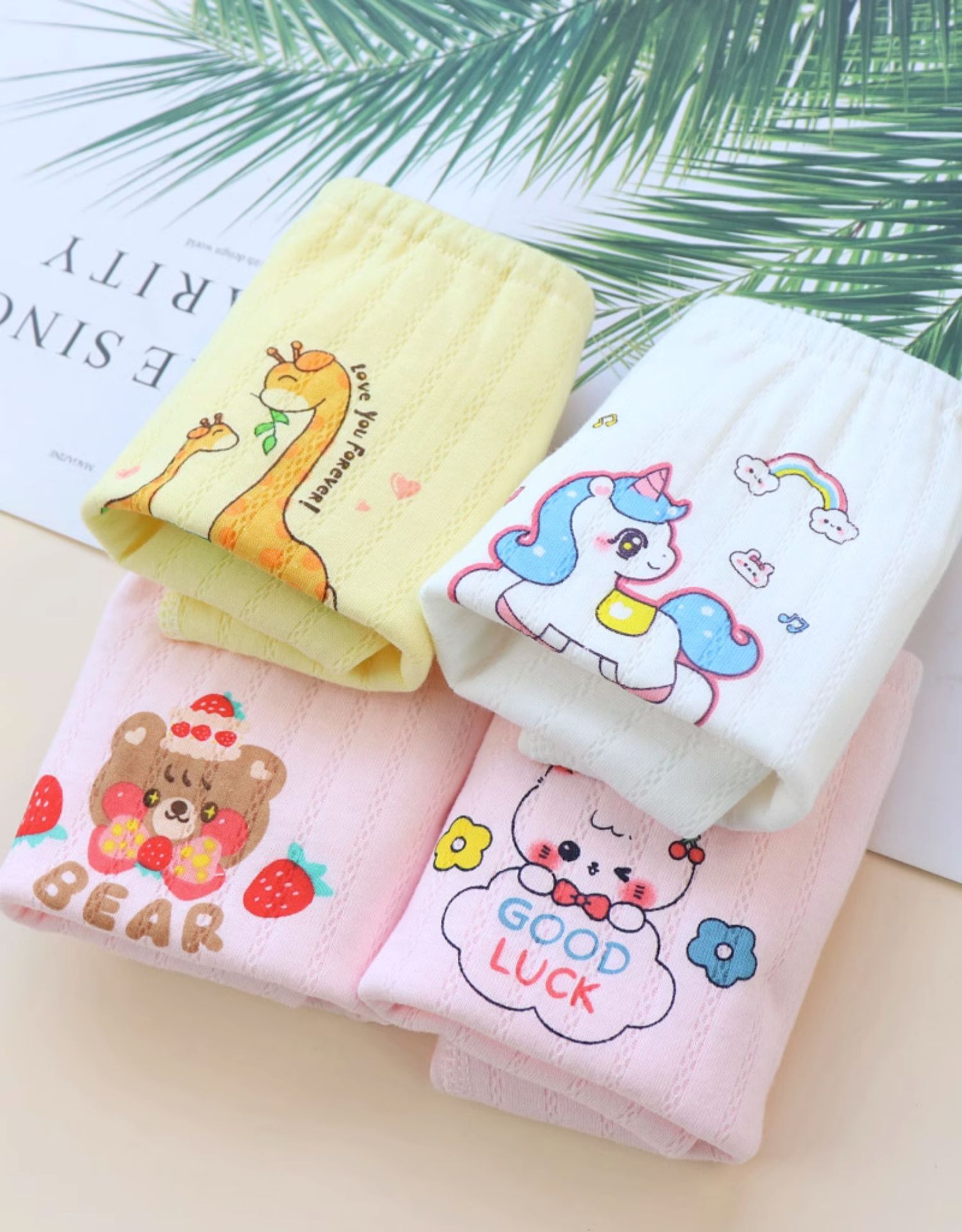 가을과 겨울 새로운 여아 면 복서 팬티 아기 더블 레이어 자카드 숨 면 만화 인쇄 뼈없는 안전 바지스토어 가기