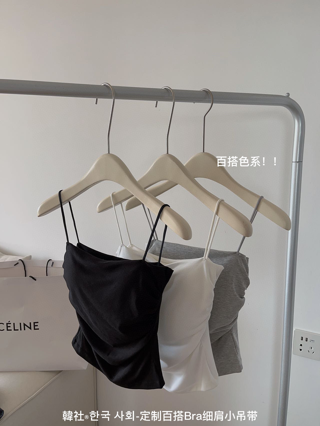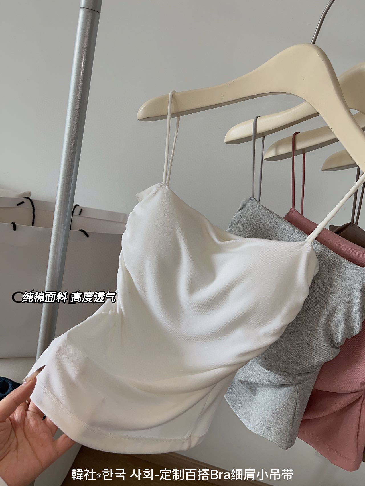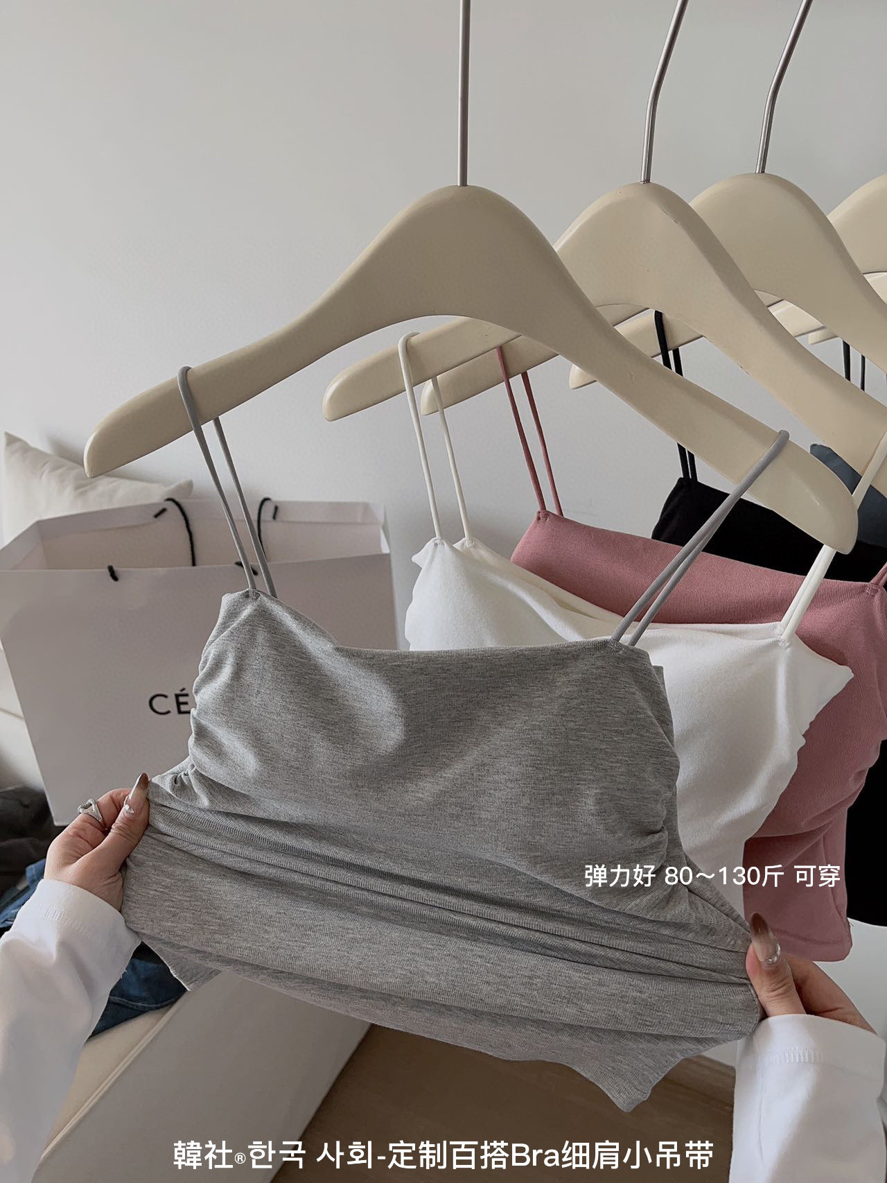 한국 사회 모든 매치 브라 얇은 어깨 스몰 슬링 새로운 스타일 가슴 패드 여성용 원피스 끈이 없는 슬림핏 플리츠 하의 조끼스토어 가기
