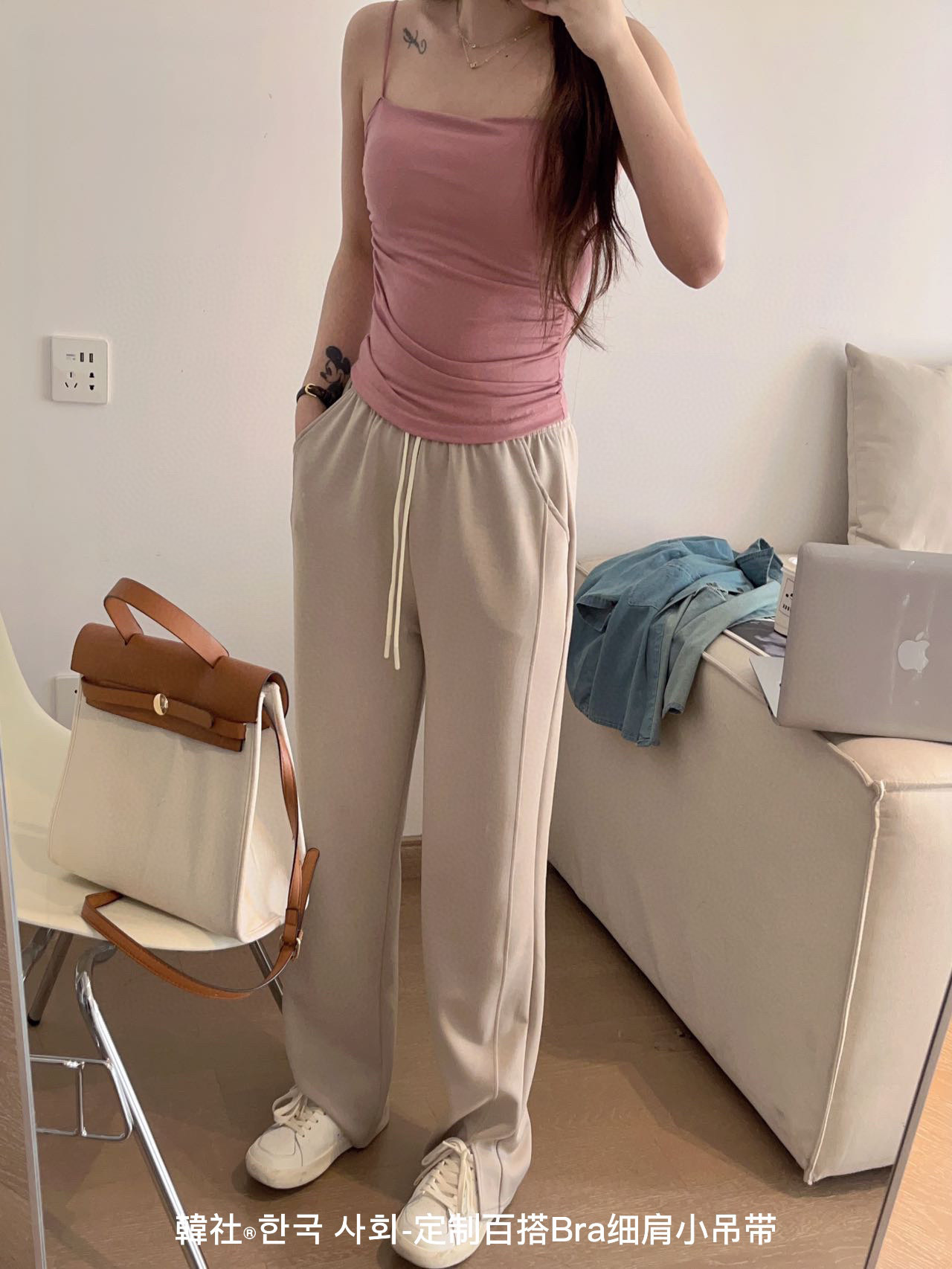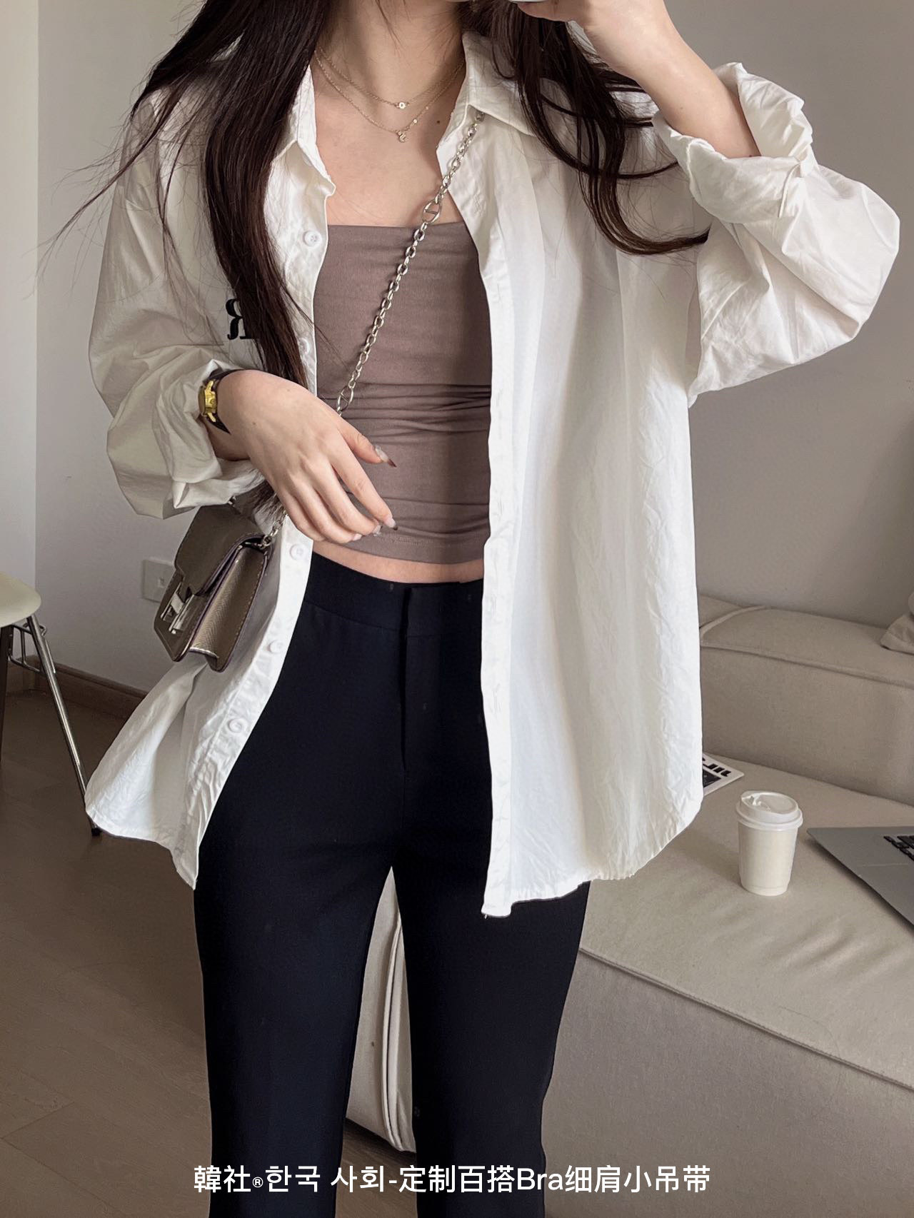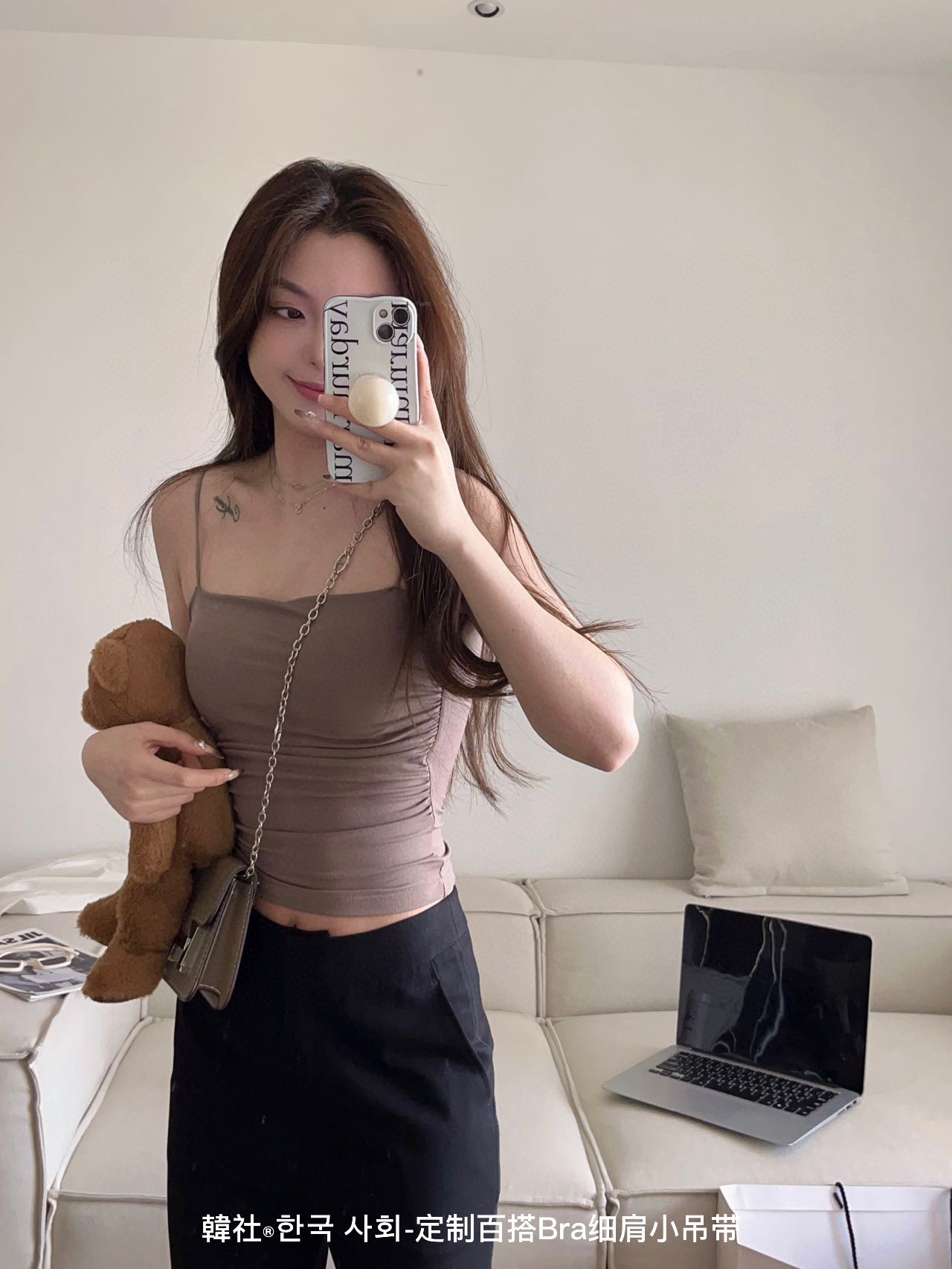 한국 사회 모든 매치 브라 얇은 어깨 스몰 슬링 새로운 스타일 가슴 패드 여성용 원피스 끈이 없는 슬림핏 플리츠 하의 조끼스토어 가기