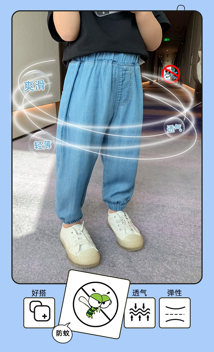 Gastrodia 대마 소년의 모기 방지 바지 봄 아기 소년 소녀 바지 어린이 바지 여름과 가을 얇은 모조 청바지스토어 가기