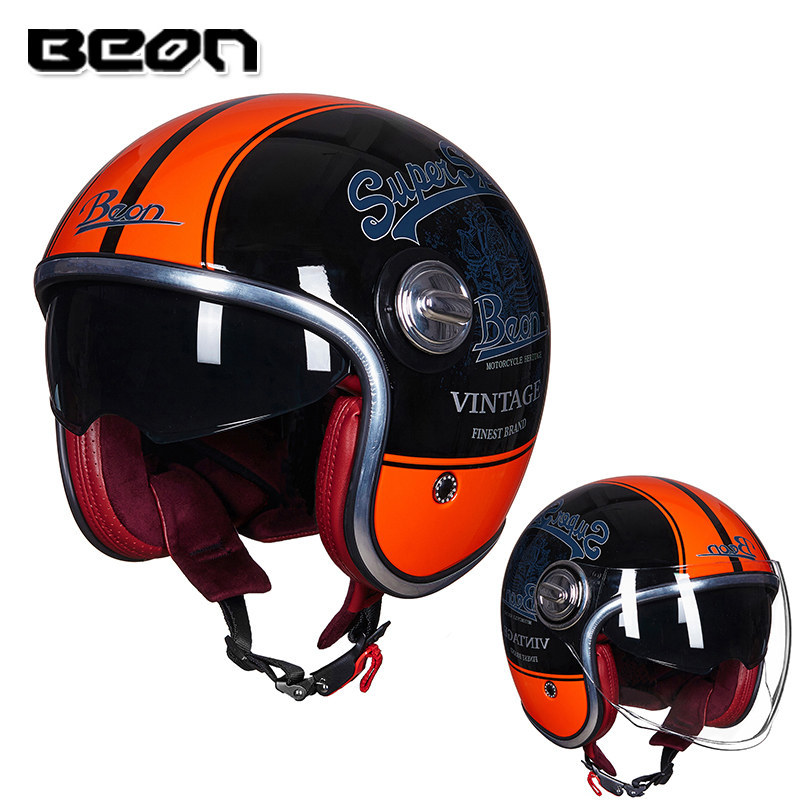 BEON 레트로 헬멧 남녀 사계절 오토바이 할리 하프 헬멧 더블 렌즈 전기 자동차 헬멧 여름 태양 보호