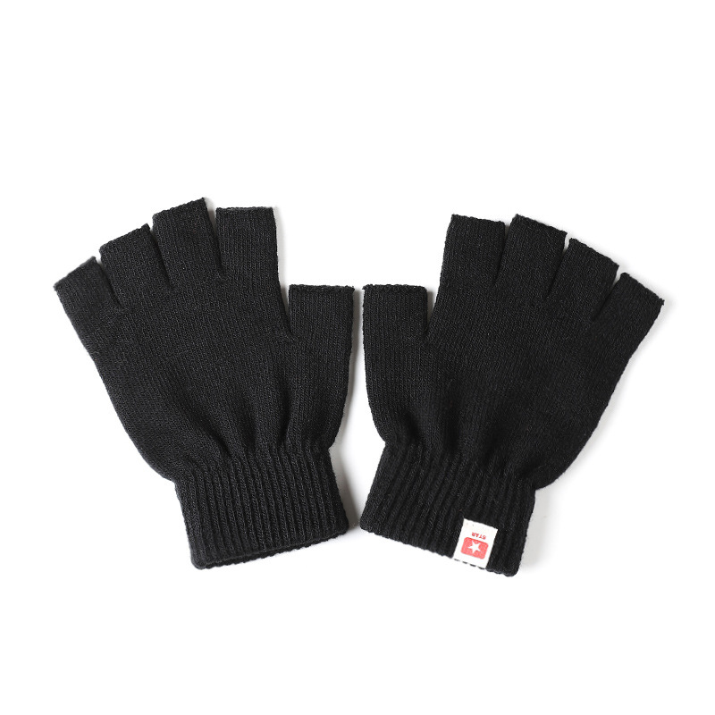 가을과 겨울 울 장갑 여자 승마 짧은 니트 컬러 반 손가락 남자 겨울 커플 장갑 학생 한국식 야외