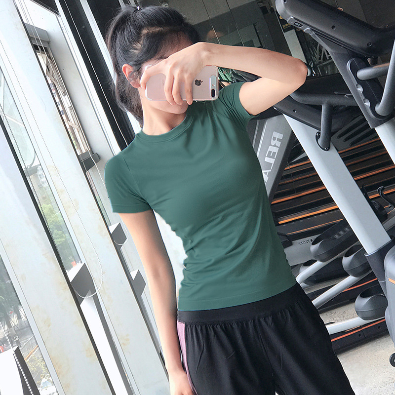 요가 의류 여성용 슬림핏 얇은 속건 러닝 반팔 티셔츠 인터넷 인기 슬리밍 피트니스 의류 스포츠 탑 러닝 여름스토어 가기