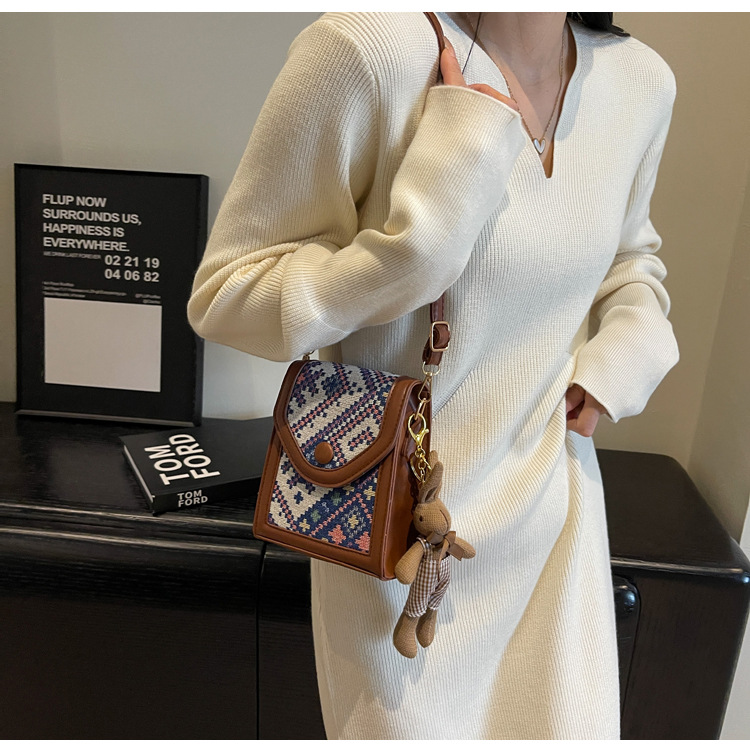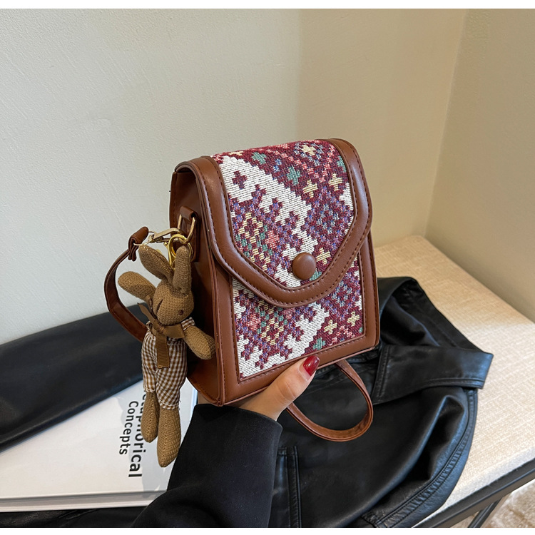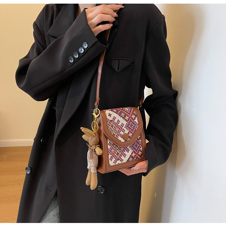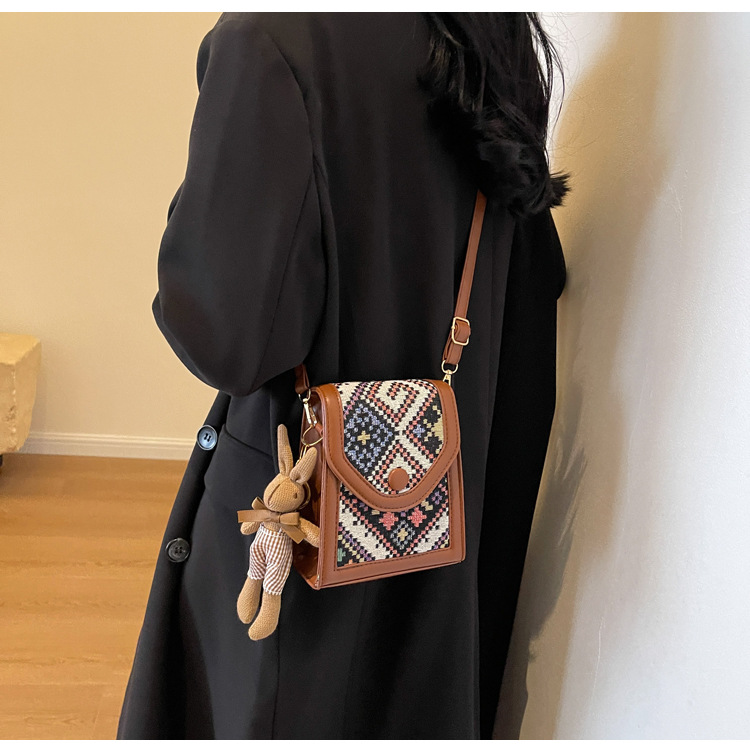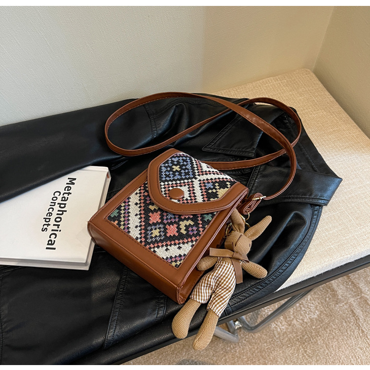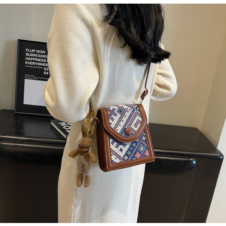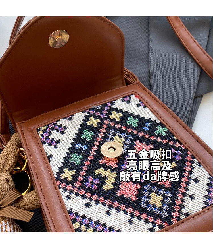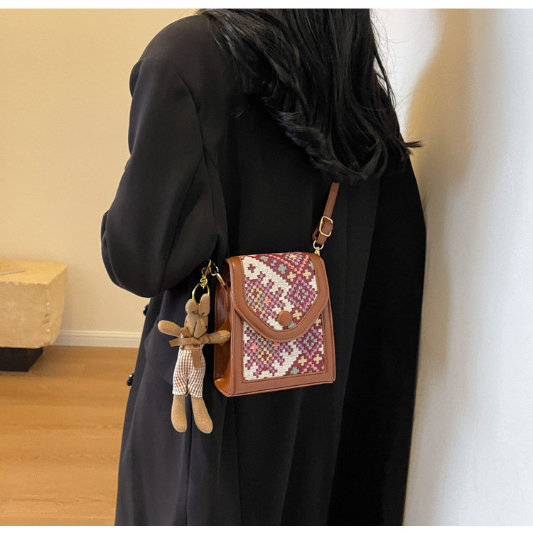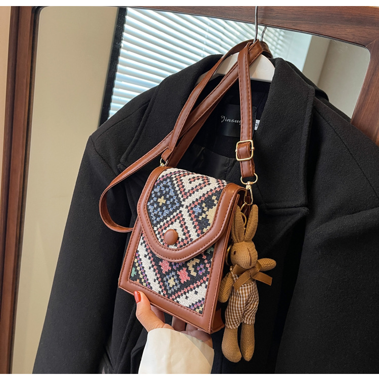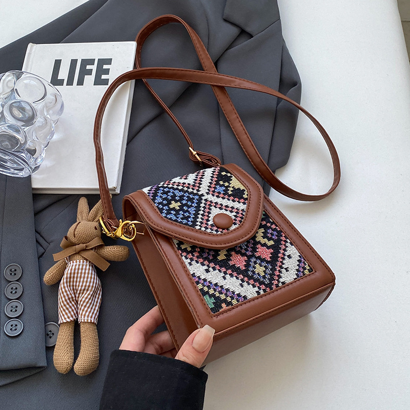 하이엔드 에스닉 스타일 크로스바디 휴대폰 가방 여성용 2023 년 가을 신상 원 숄더 스몰 스퀘어 백 패션 올매치 코인 지갑스토어 가기