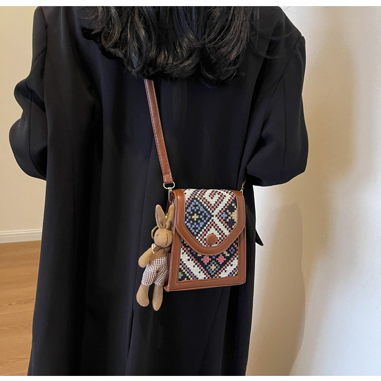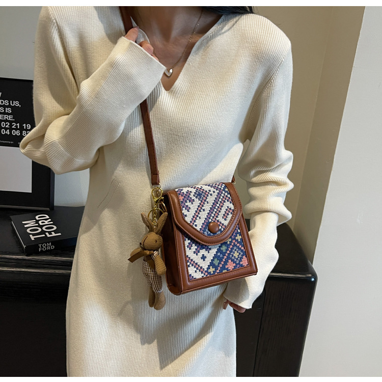 하이엔드 에스닉 스타일 크로스바디 휴대폰 가방 여성용 2023 년 가을 신상 원 숄더 스몰 스퀘어 백 패션 올매치 코인 지갑