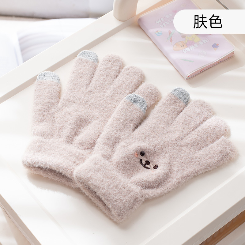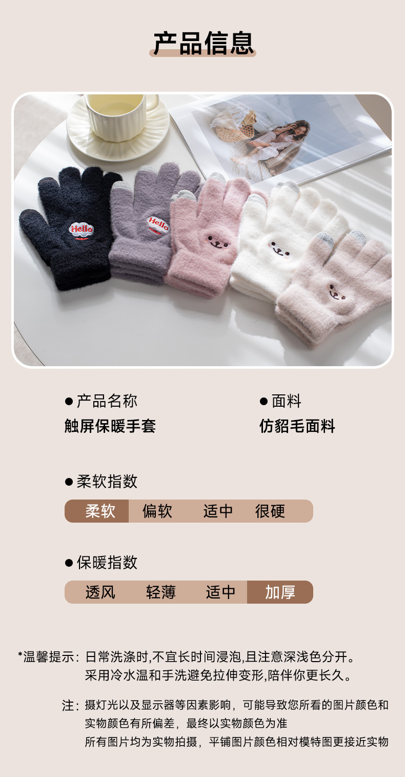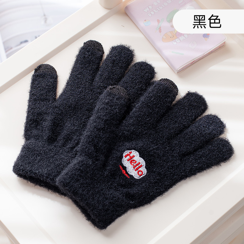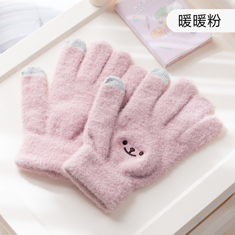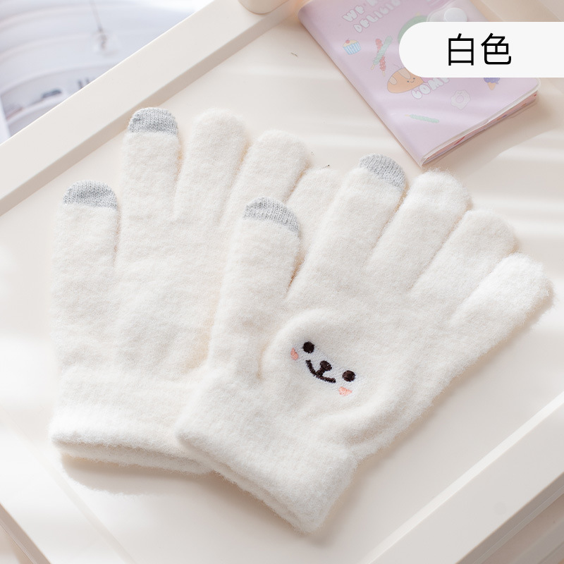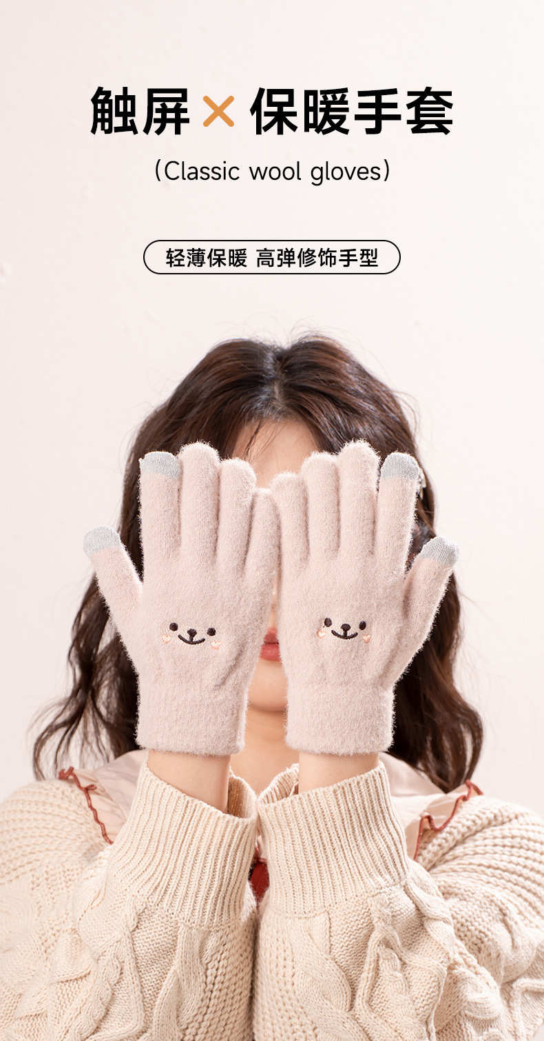 새로운 겨울 귀여운 방한 및 따뜻한 터치 스크린 타이핑 학습 자수 만화 웃는 얼굴 니트 장갑 사이클링