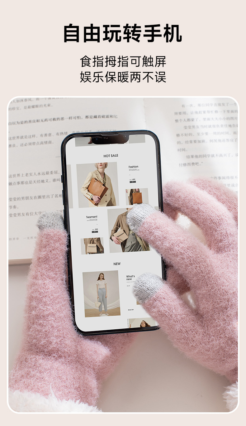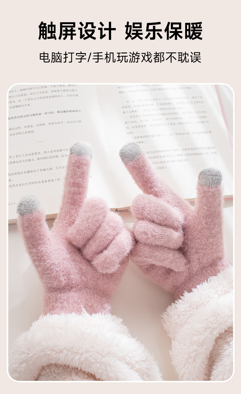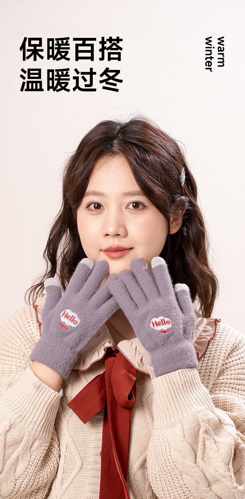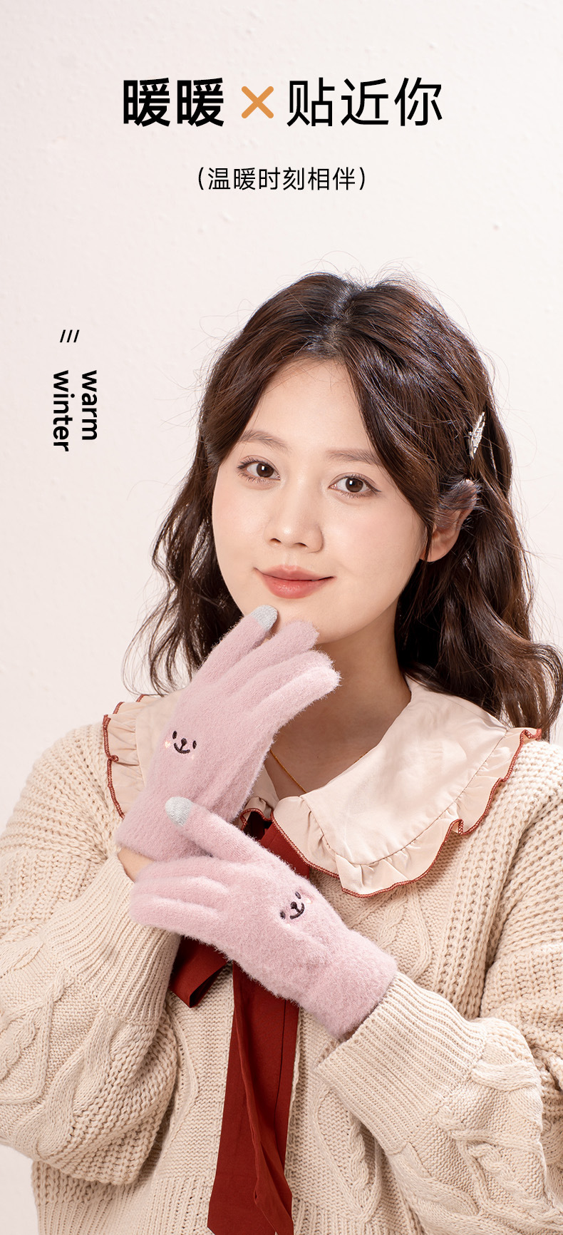 새로운 겨울 귀여운 방한 및 따뜻한 터치 스크린 타이핑 학습 자수 만화 웃는 얼굴 니트 장갑 사이클링