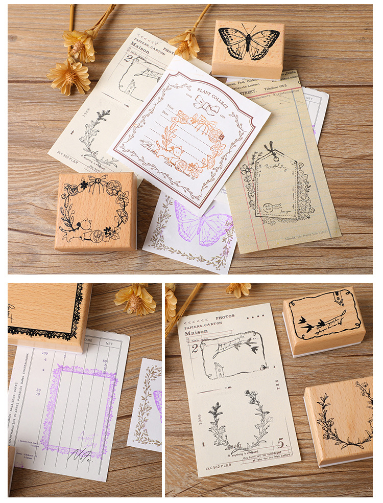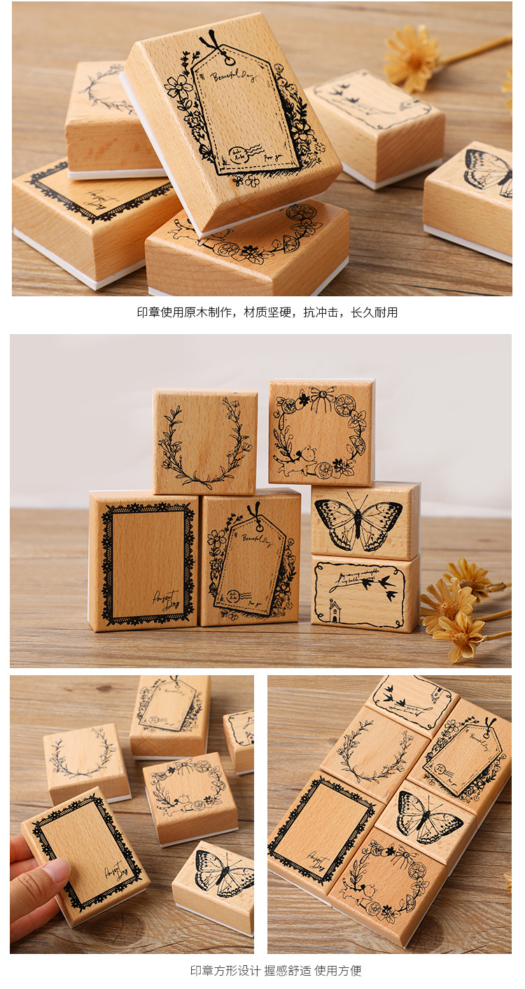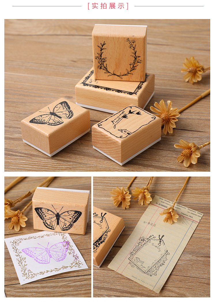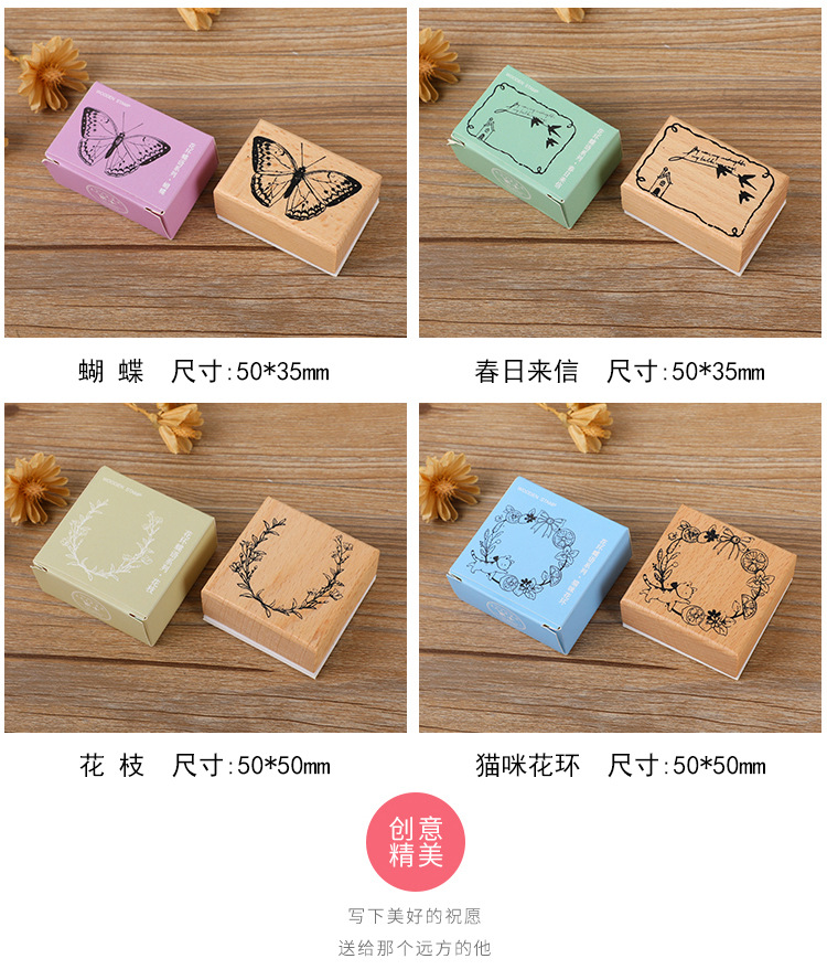 원래 빛 복고풍 손 계정 스탬프 나비 고양이 화환 메시지 카드 DIY 장식 재료 인쇄 스탬프스토어 가기