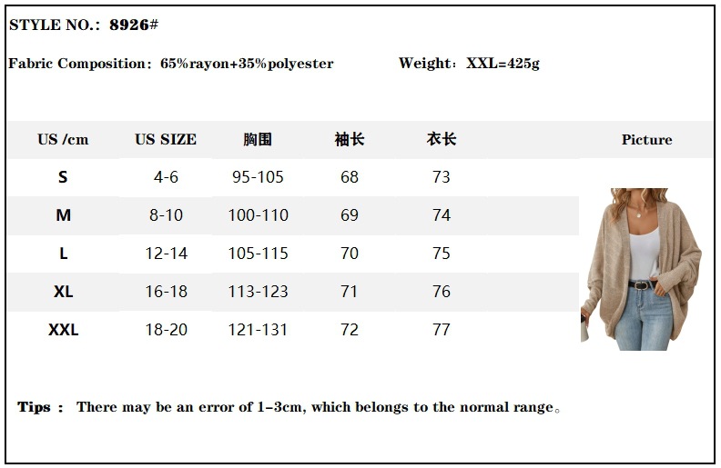 유럽과 미국의 국경 간 2025 Amazon 가을 겨울 신작 여성 패션 배트 슬리브 카디건 루즈 니트 재킷