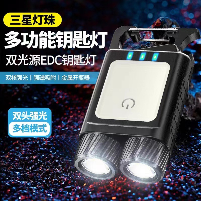 강한 빛 휴대용 열쇠 고리 램프 더블 램프 홀더 충전식 작업 램프 비상 휴대용 램프 슈퍼 밝은 야외 캠핑 램프