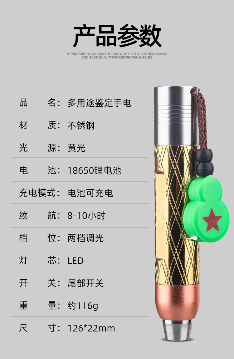 비취 손전등 소 구경 강한 빛 비취 보석 후 비취 문학 놀이 식별 하이라이트 스포트라이트 식별 램프스토어 가기