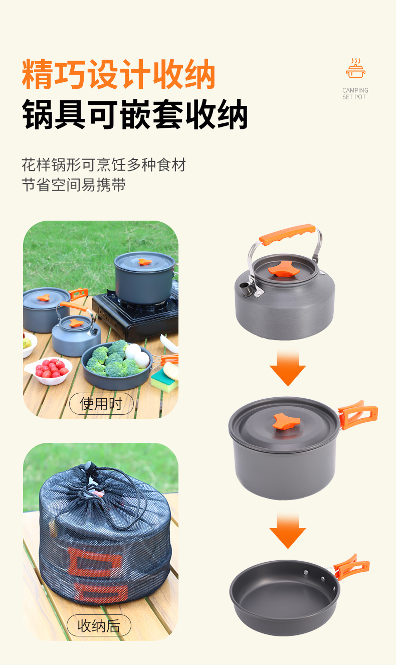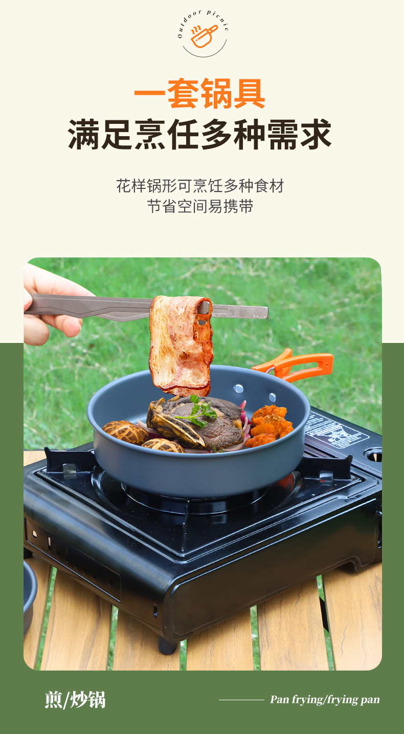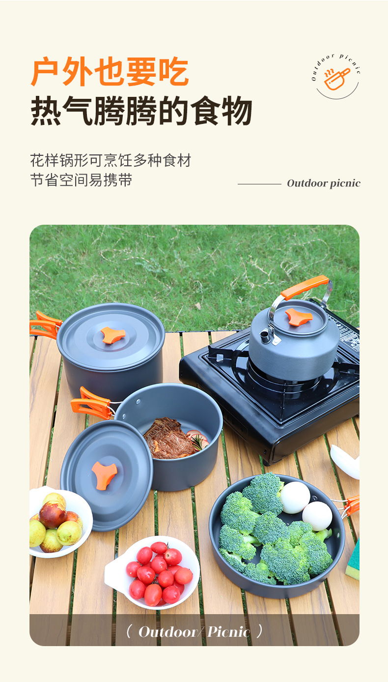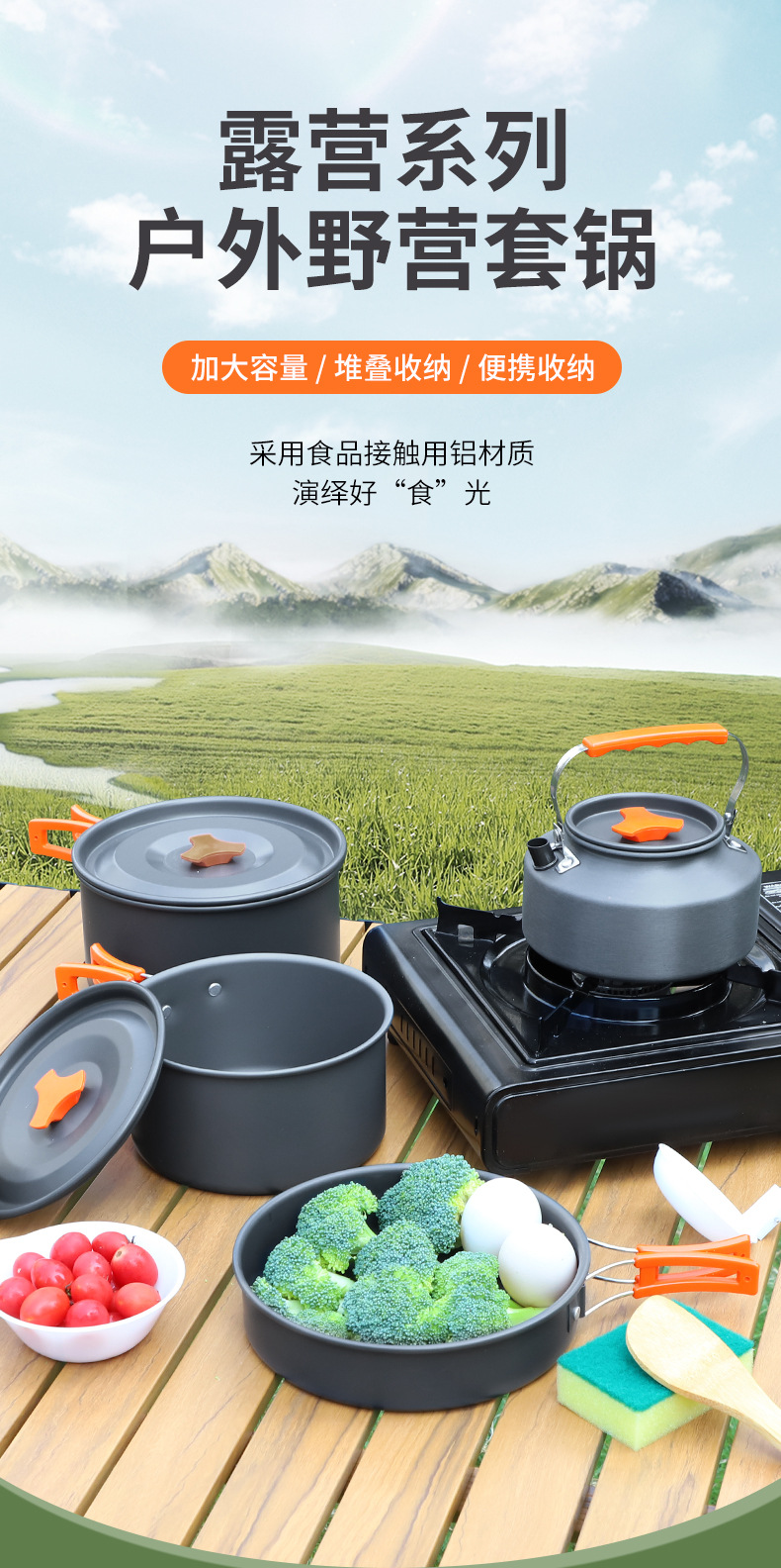 제조 업체 도매 캠핑 조리기구 야외 주전자 프라이팬 장비 휴대용 야외 캠핑 식기 세트 냄비스토어 가기