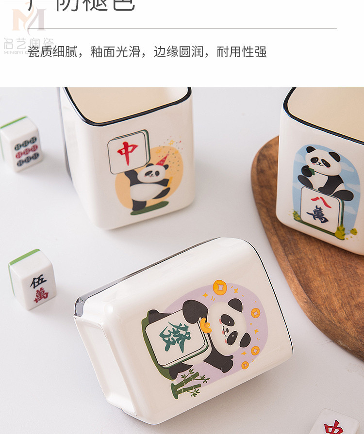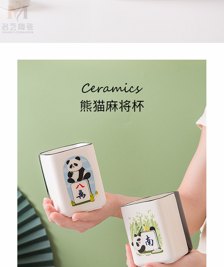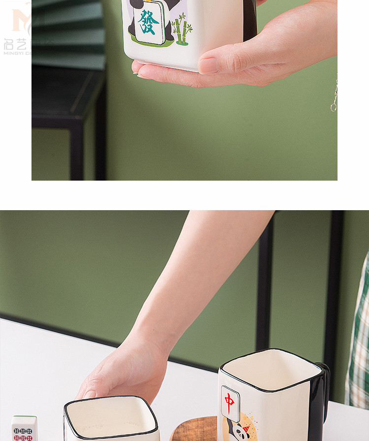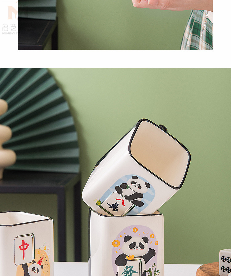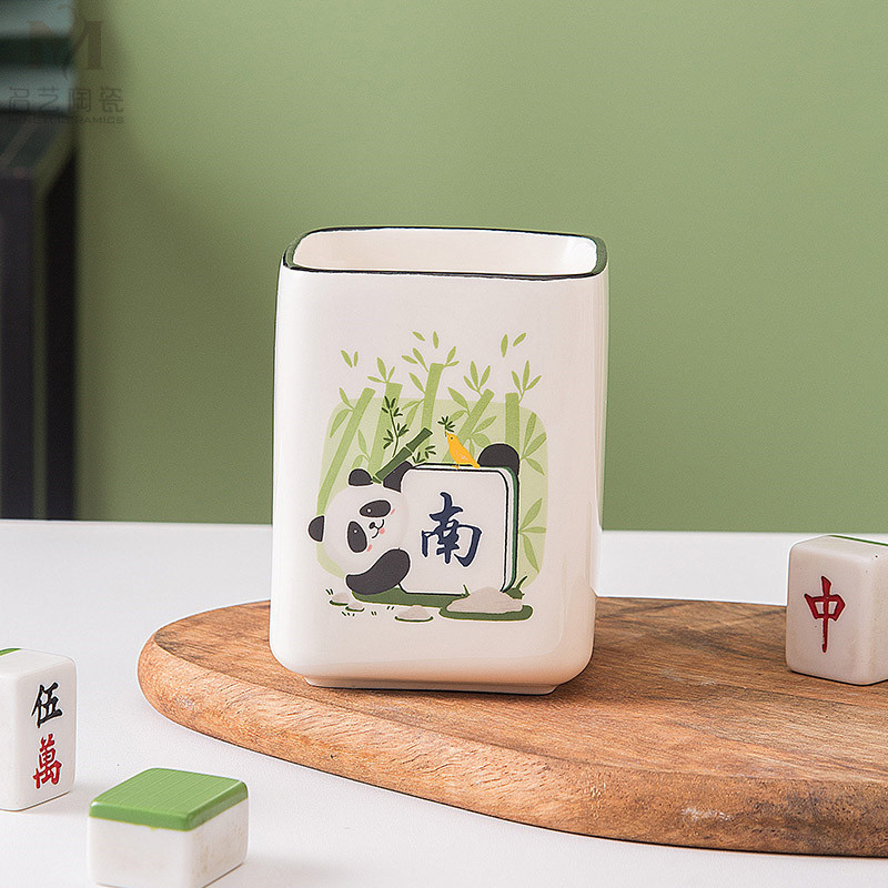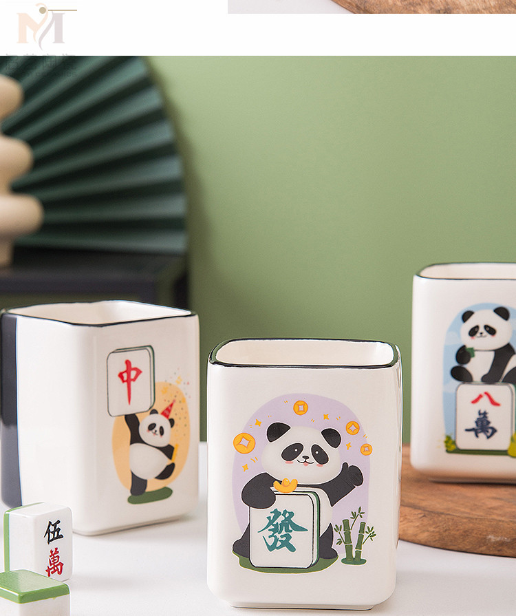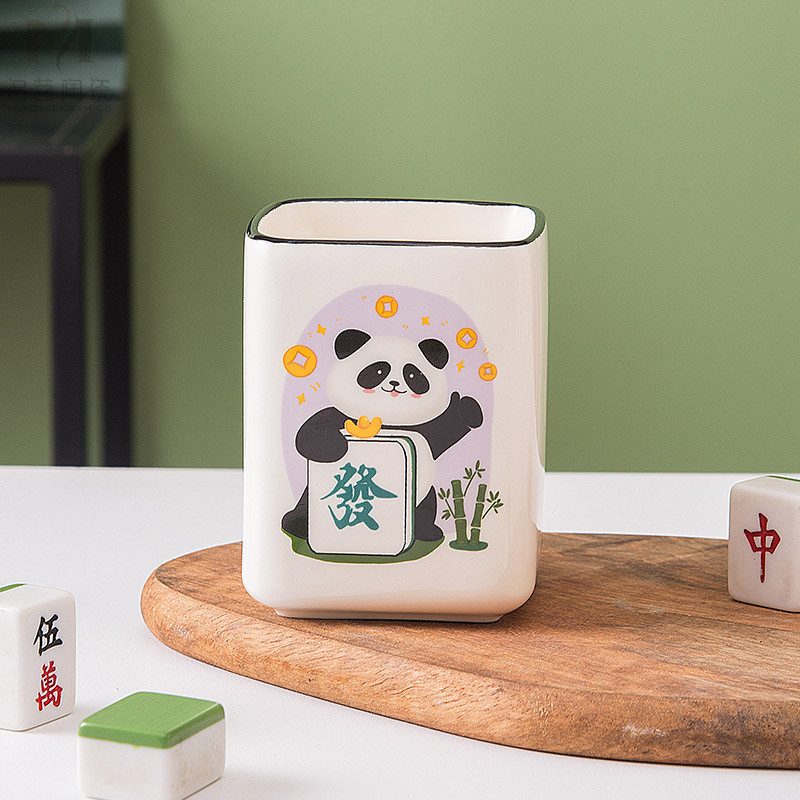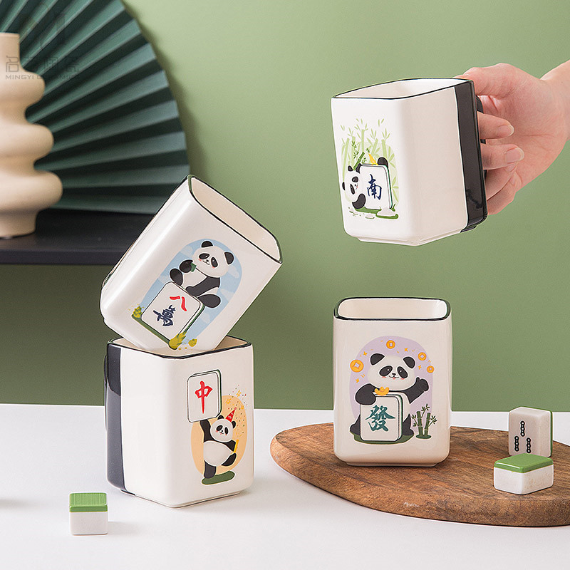 중국풍 팬더 머그컵, 창의적인 마작 행운의 상징 세라믹 물컵, 가정, 사무실, 카드룸용, 선물용
