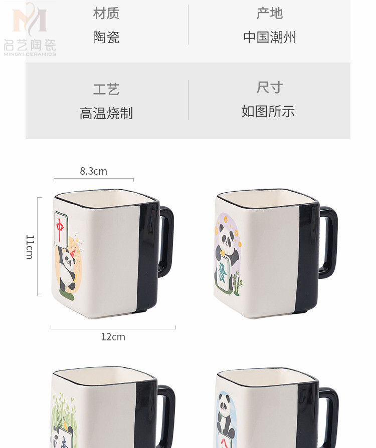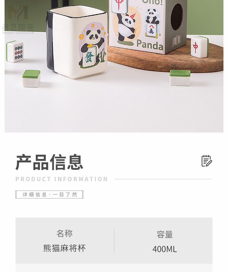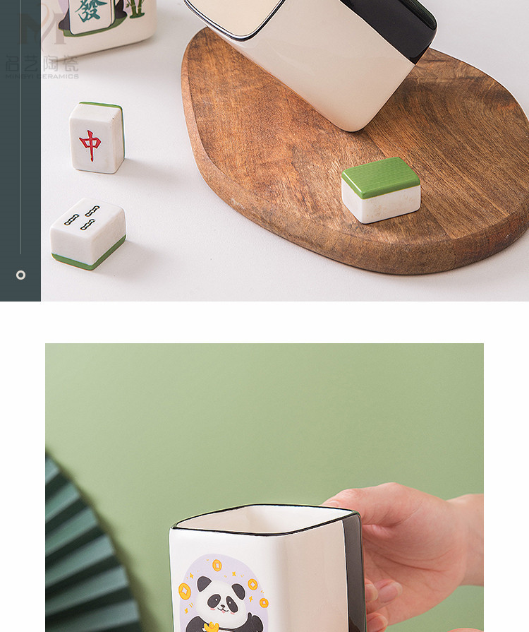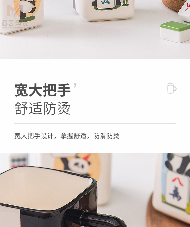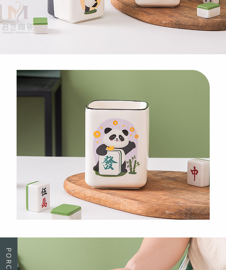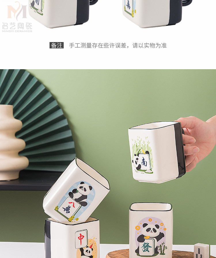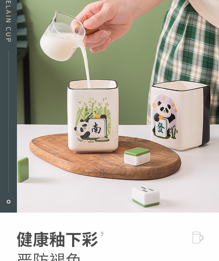 중국풍 팬더 머그컵, 창의적인 마작 행운의 상징 세라믹 물컵, 가정, 사무실, 카드룸용, 선물용