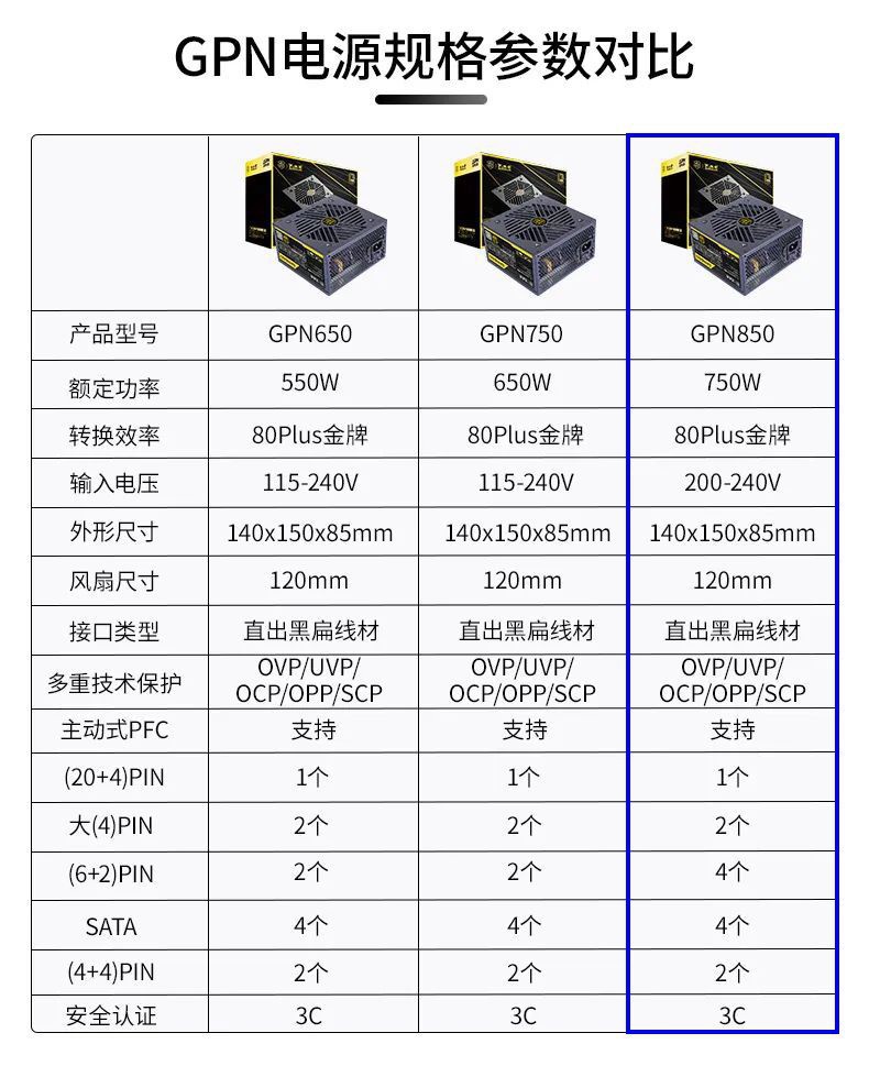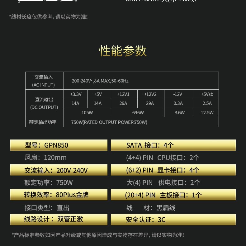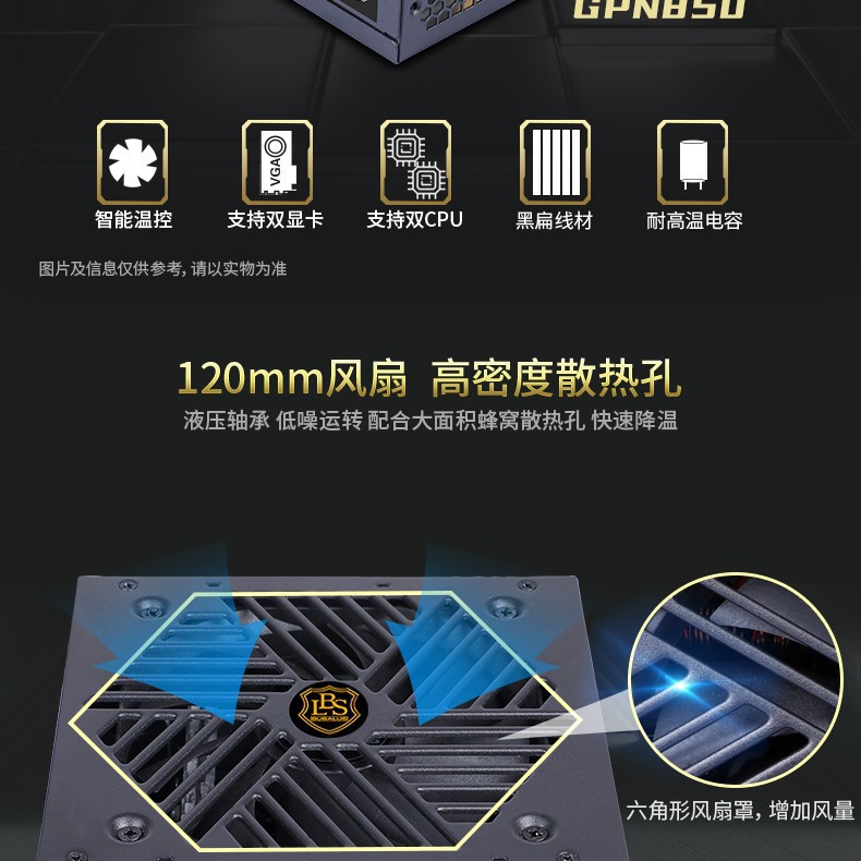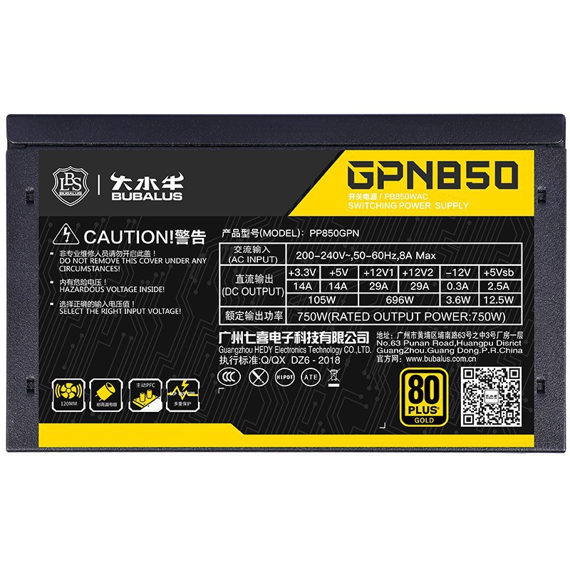 버팔로 GPN850 골드 인증 정격 750W 데스크탑 컴퓨터 전원 공급 장치 4 8p 그래픽 카드 듀얼 CPU 전원 공급 장치